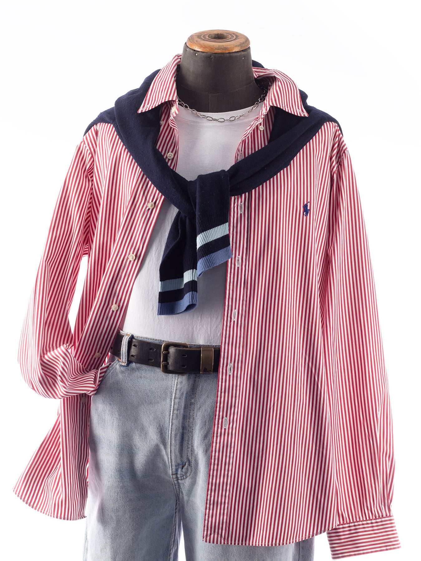 Vintage 90's Men Ralph Lauren Red White Striped Shirt