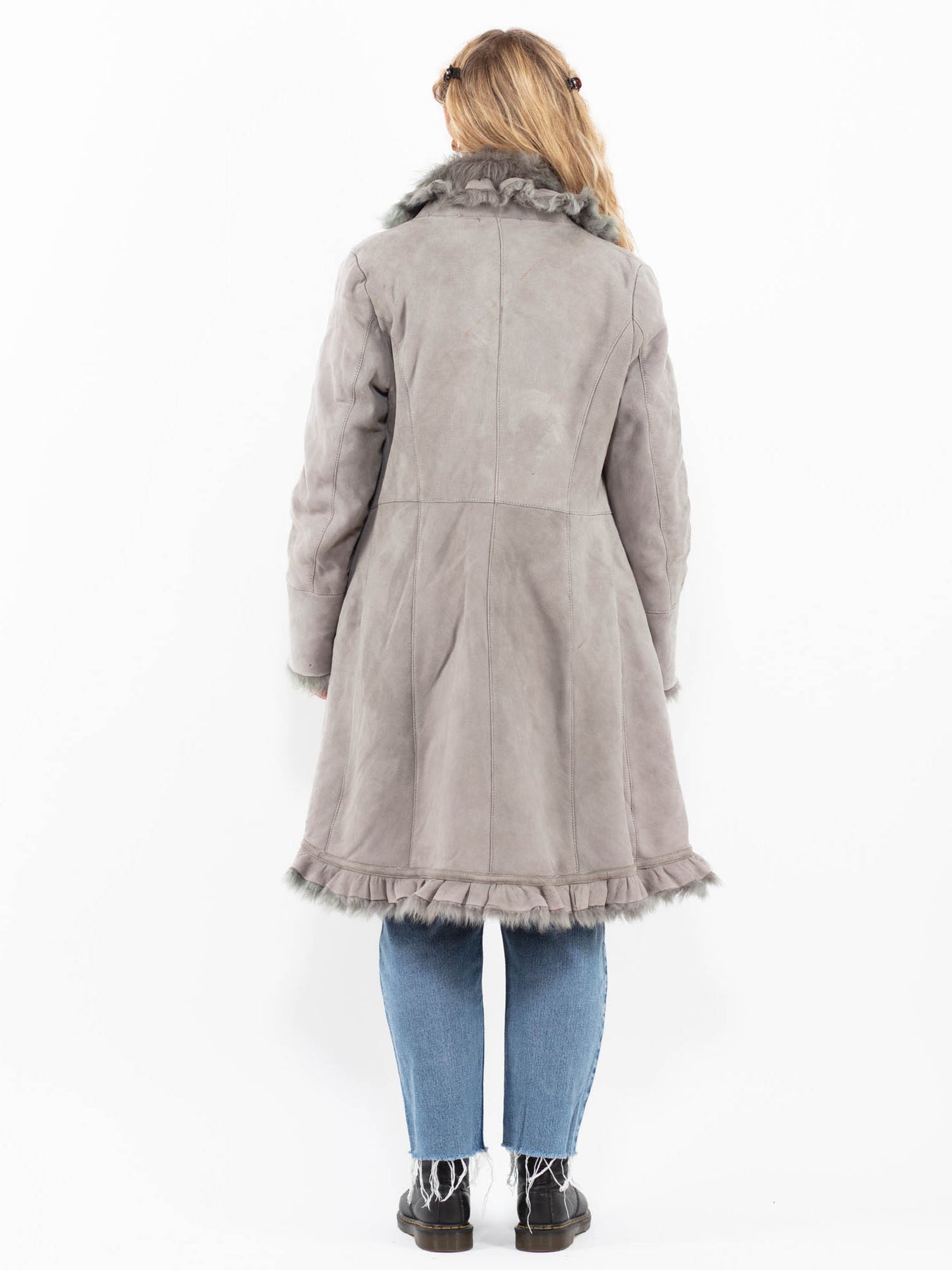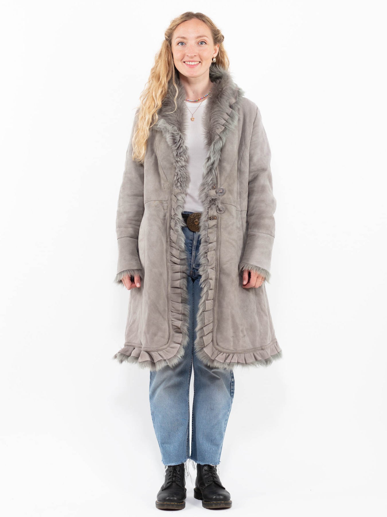 Gray Vintage 00's Women Sheepskin Shearling Coat in Gray With Free Delivery