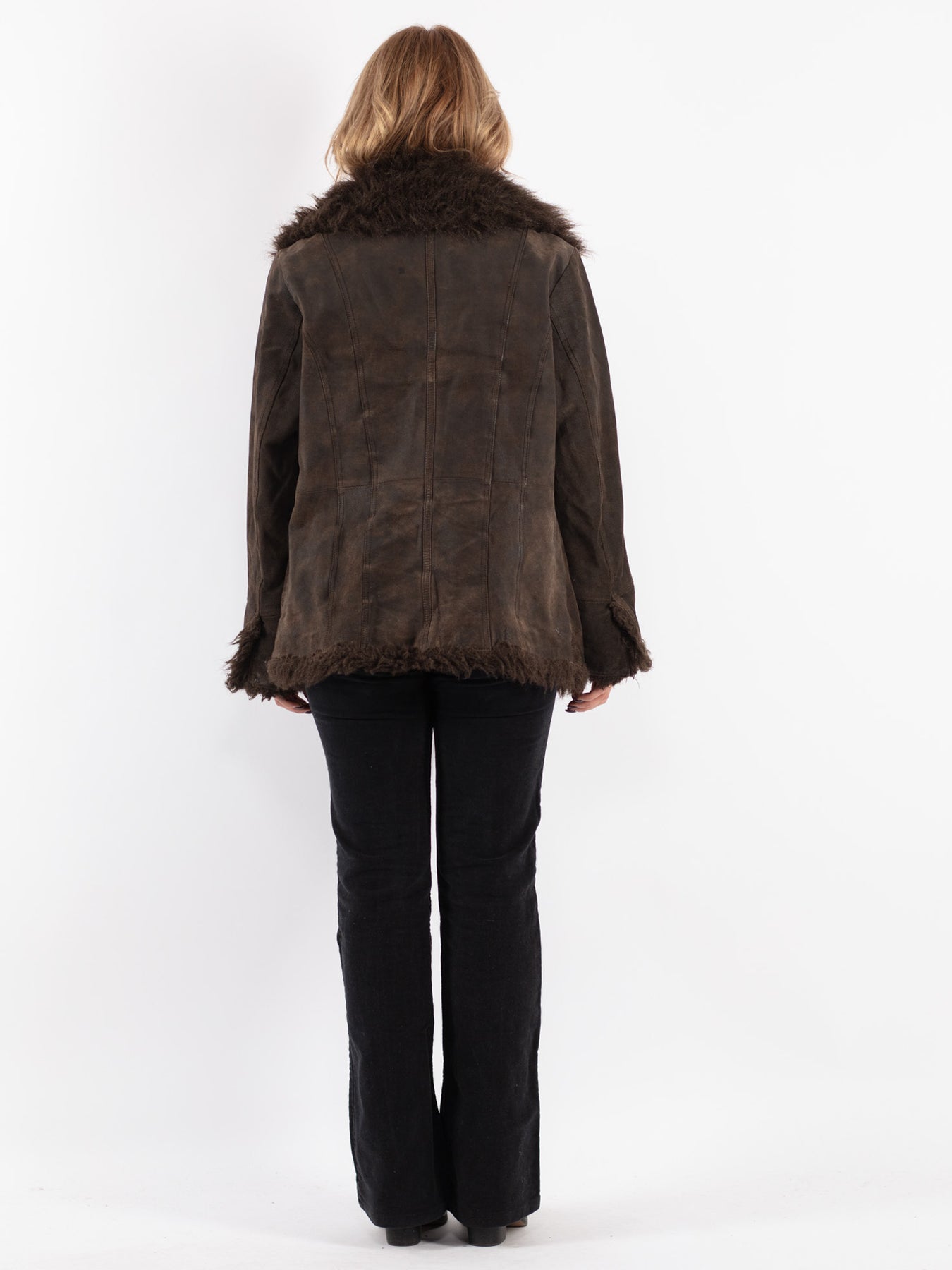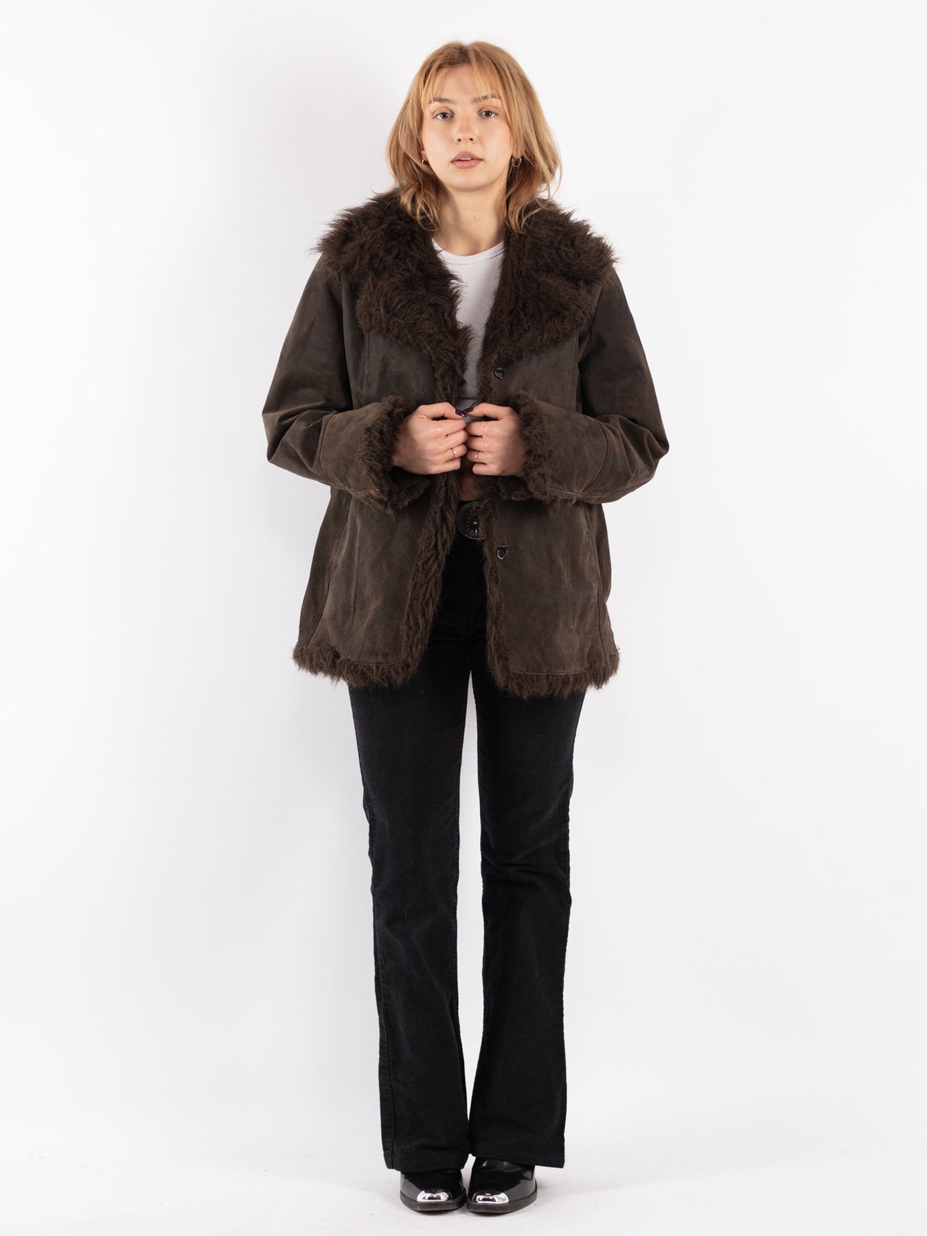 Vintage 00's Women Suede Sherpa Coat in Brown