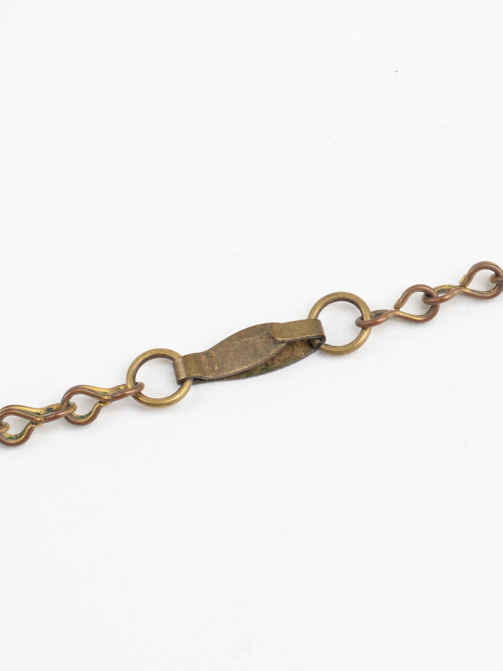 • Condition: Good vintage condition. Paint is mostly intact with some minor chips and fading. Back shows patina and green oxidation. Secure and wearable.