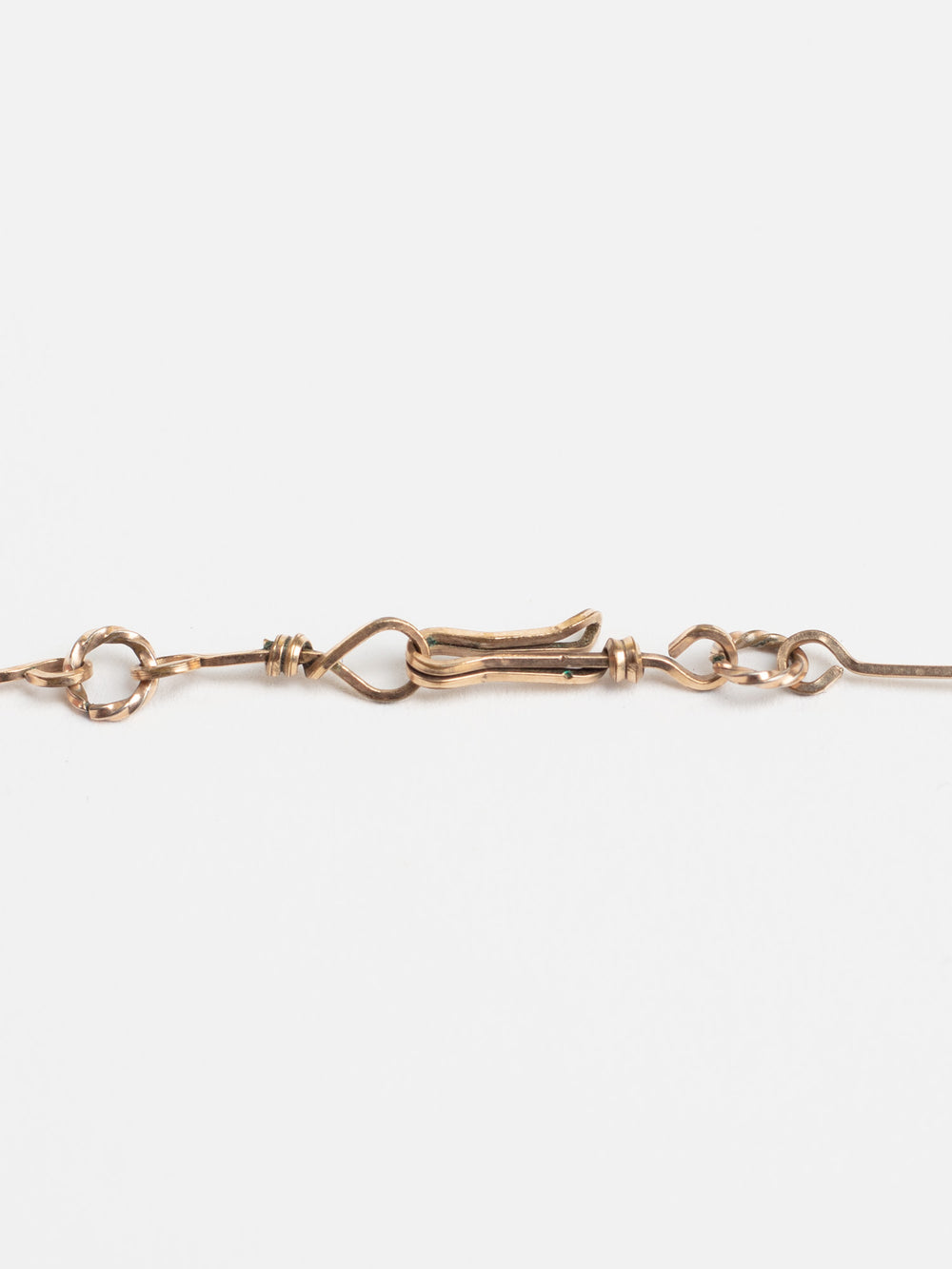 This elegant vintage necklace features small clear faceted crystal beads set between gold-tone twisted links and bar connectors. Lightweight and understated, it’s perfect for layering or wearing solo.