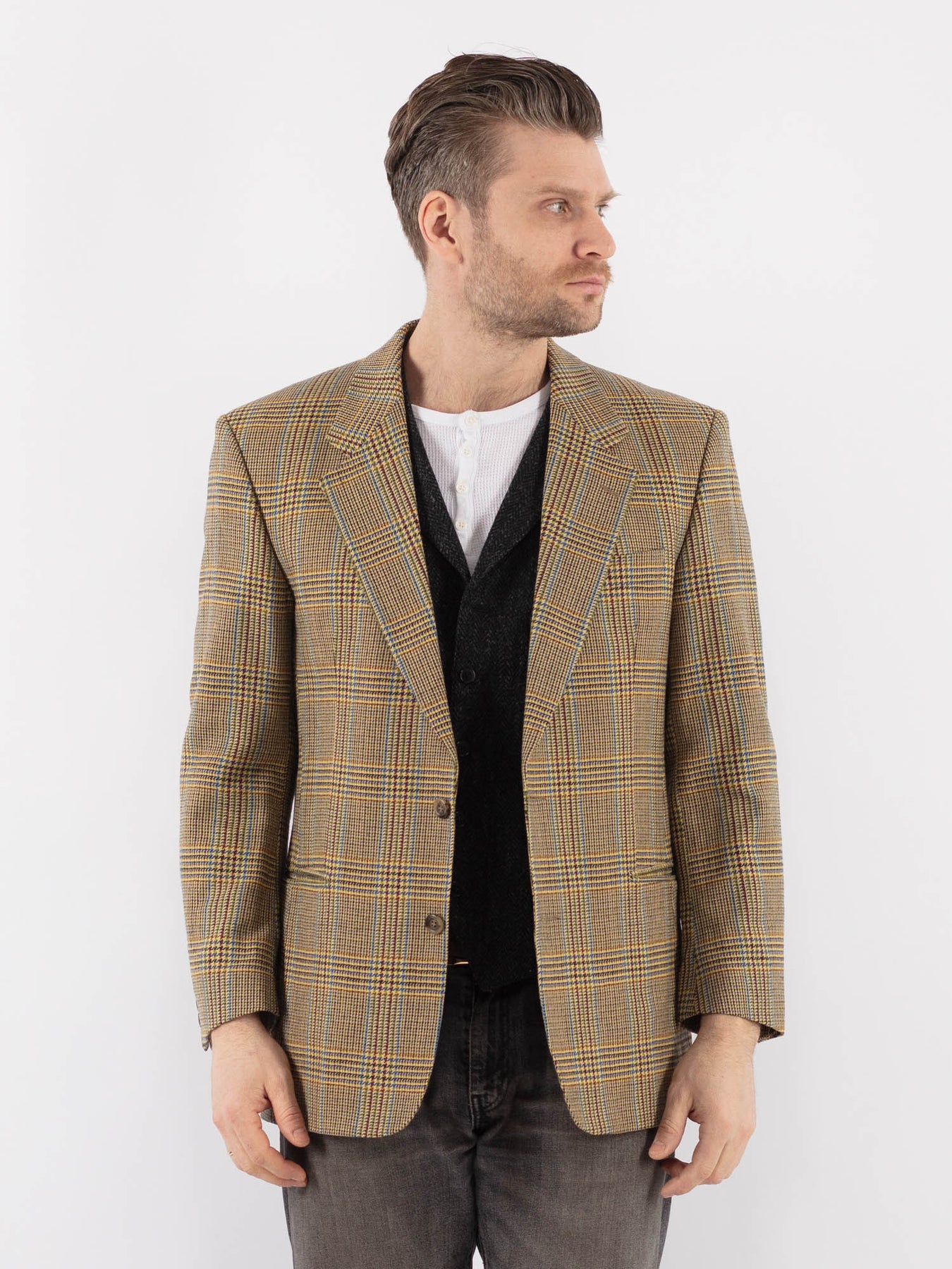 Vintage 70's Men Wool Blazer Jacket in Multi