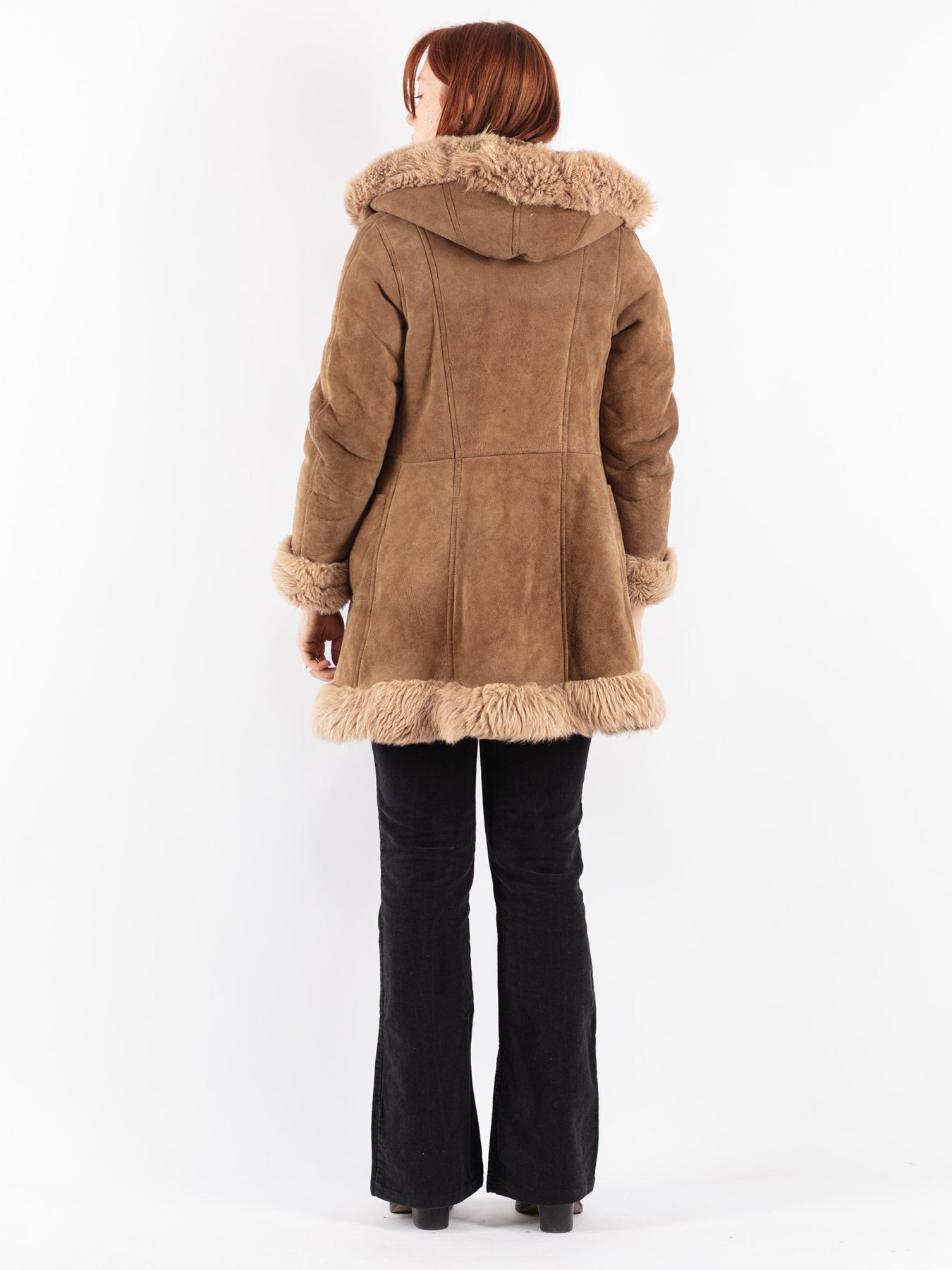 Beige Vintage 70's Women Hooded Sheepskin Coat in Beige With Free Delivery