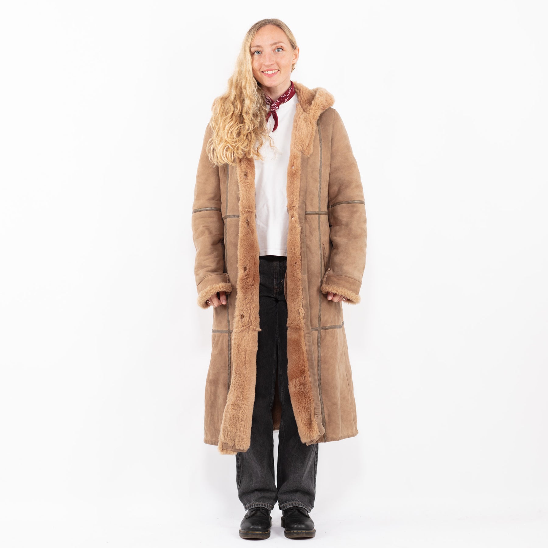 Beige Vintage 70's Women Hooded Sheepskin Coat in Beige With Free Delivery