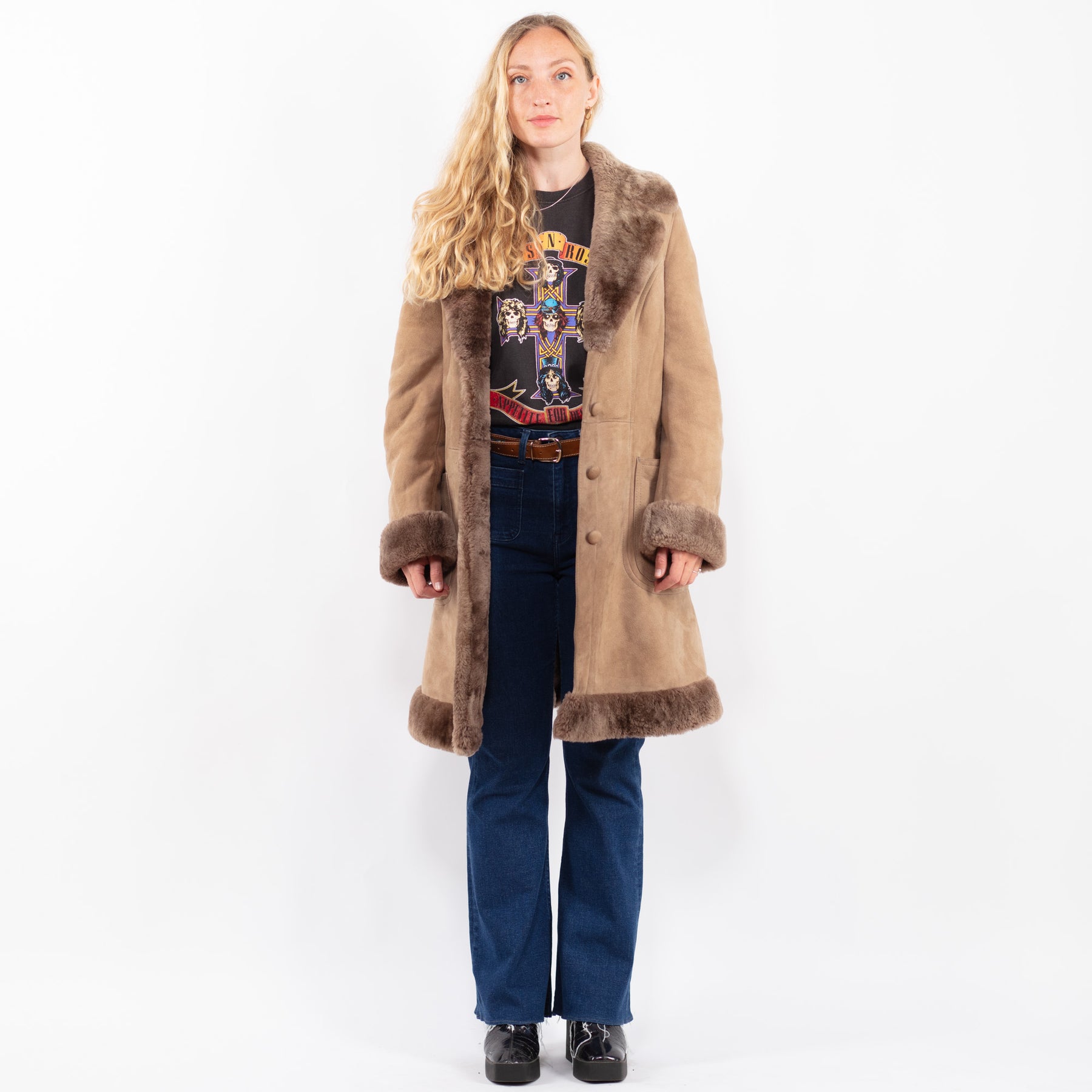 Beige Vintage 70's Women Sheepskin Coat in Beige With Free Delivery