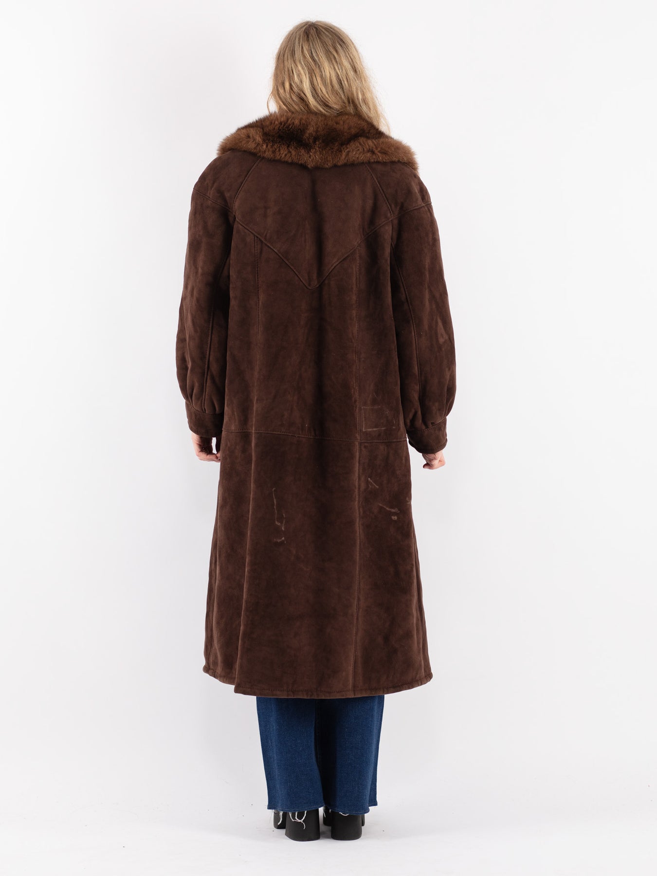 Vintage 70's Women Sheepskin Long Coat in Brown