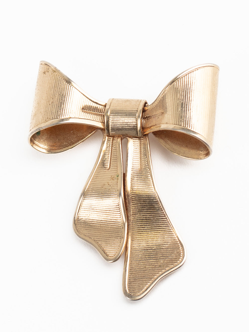 Vintage 80s Avon Gold-Tone Bow Brooch – Large Textured Ribbon Pin