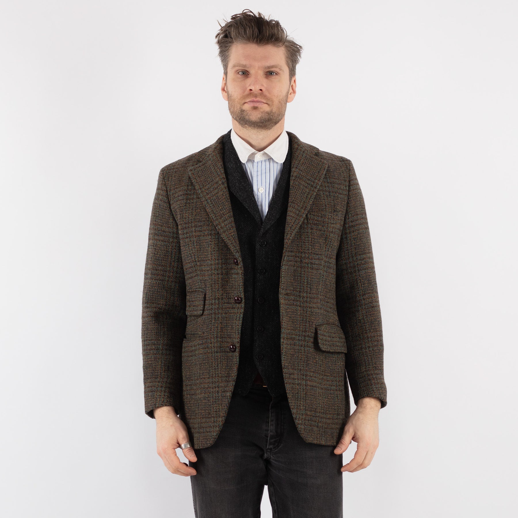 Vintage 80's Men Harris Tweed Jacket in Green