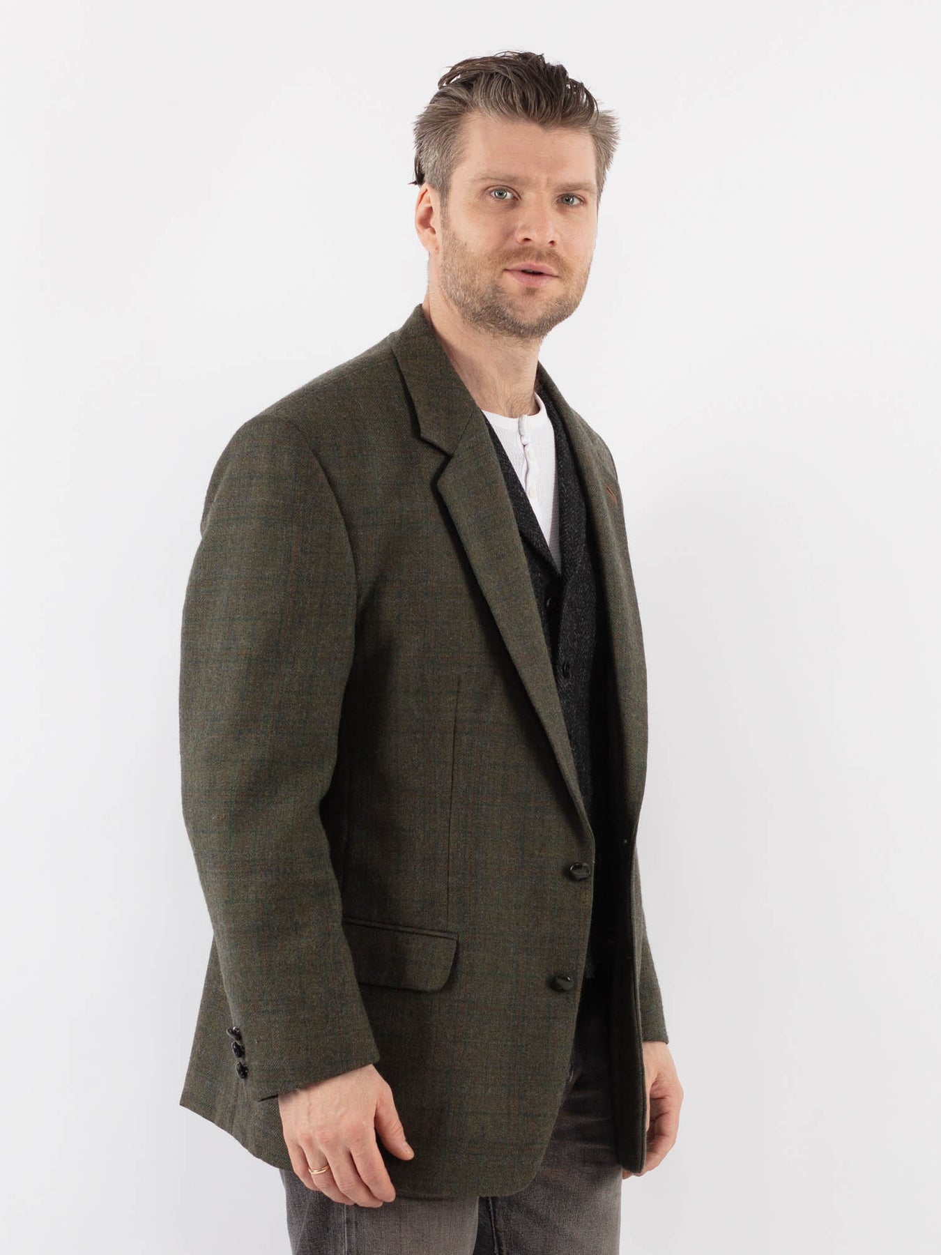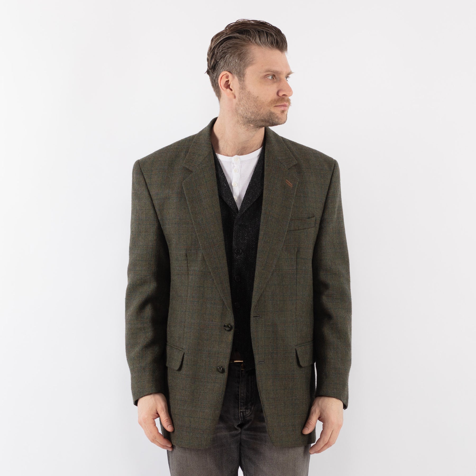 Vintage 80's Men Wool Blazer Jacket in Green