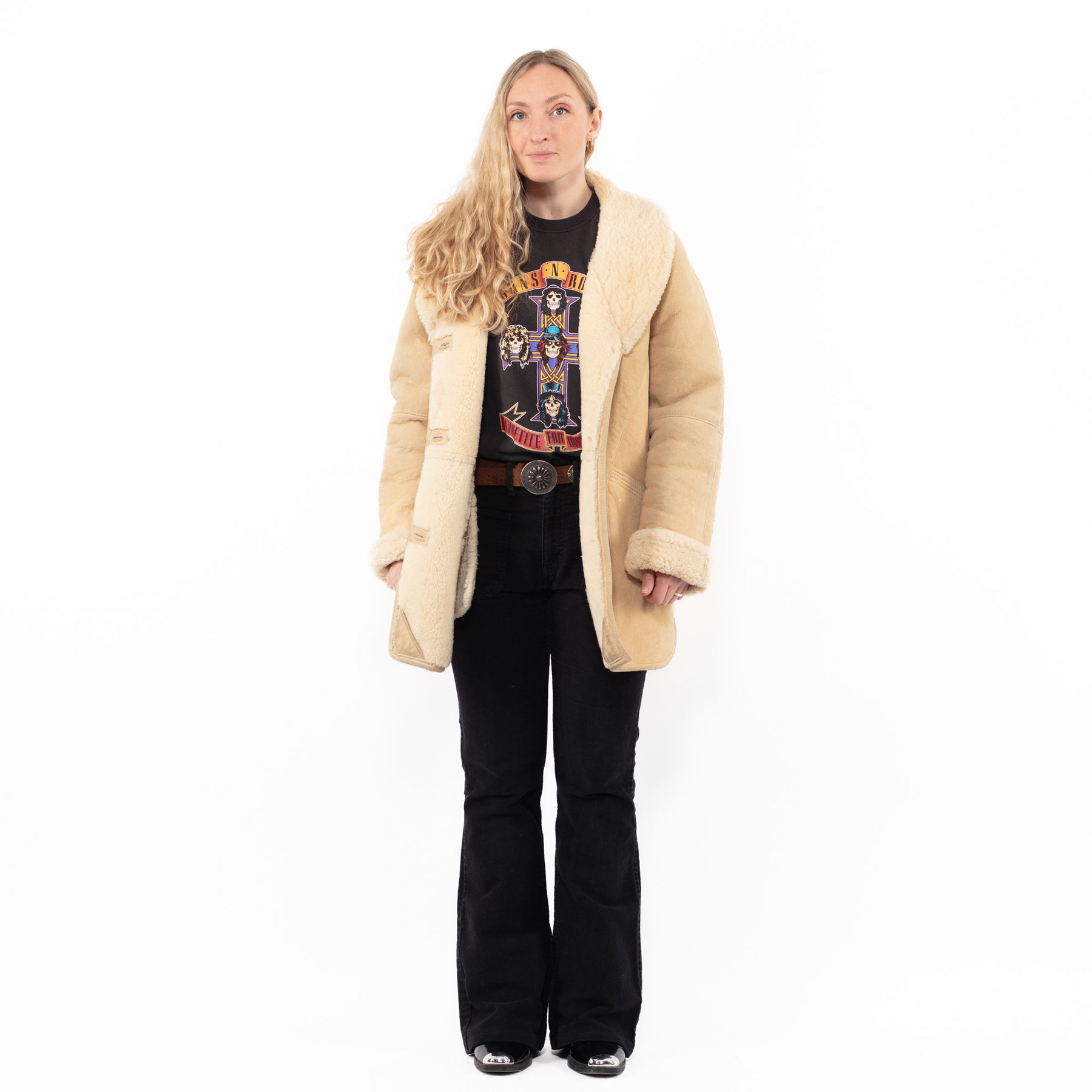 Vintage 80's Women Sheepskin Coat in BeigeA0899