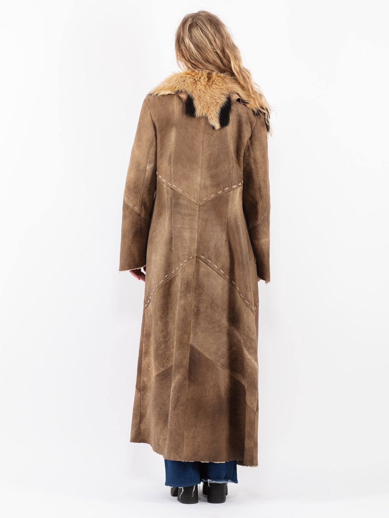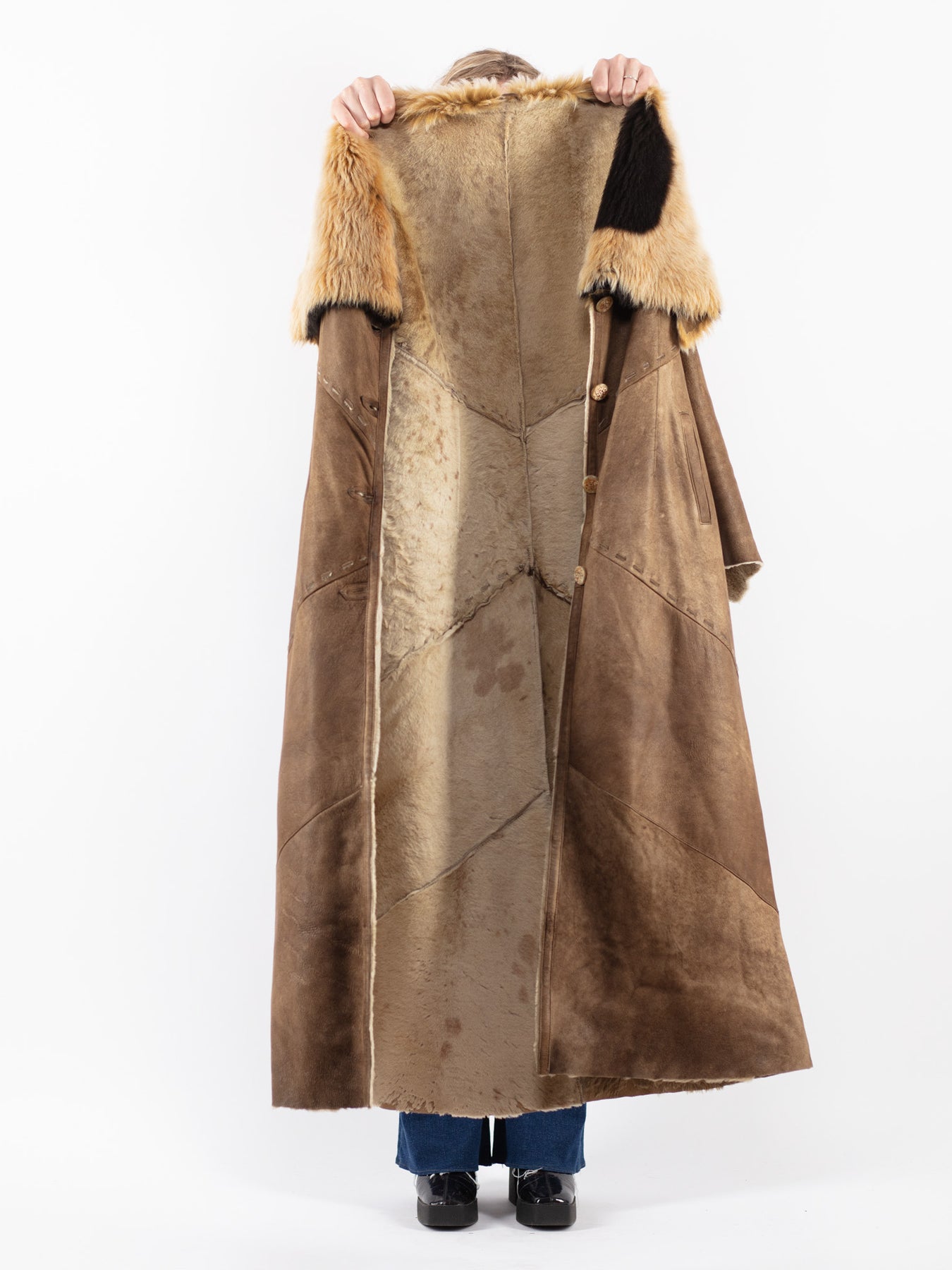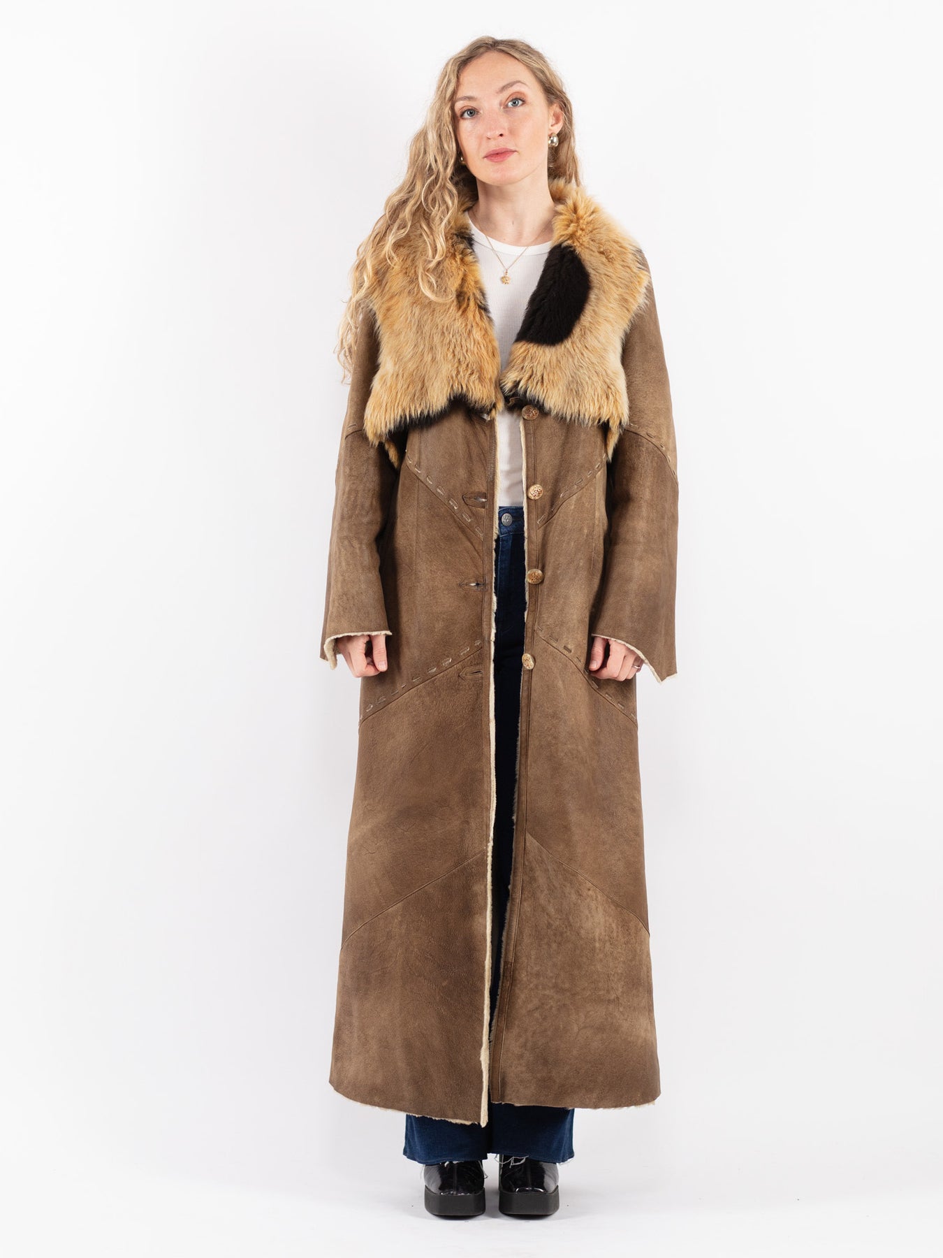 Vintage 80's Women Sheepskin Maxi Coat in Beige