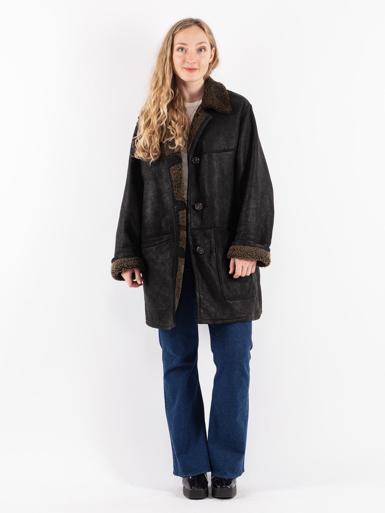 Black Vintage 80's Women Sheepskin Coat in Black With Free Delivery