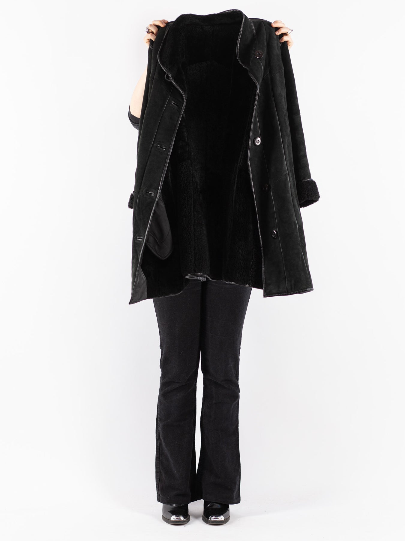 Black Vintage 80's Women Sheepskin Coat in Black With Free Delivery