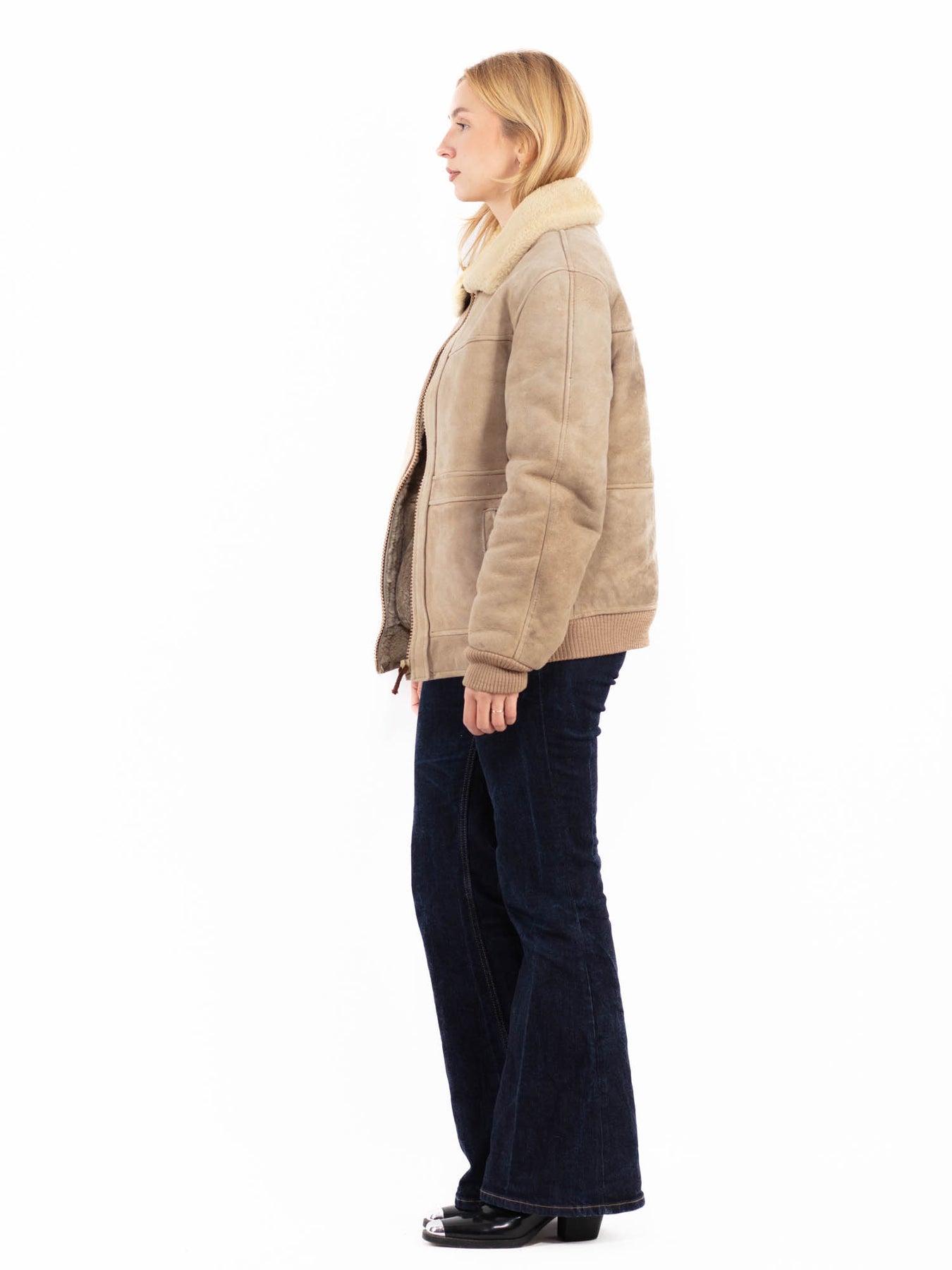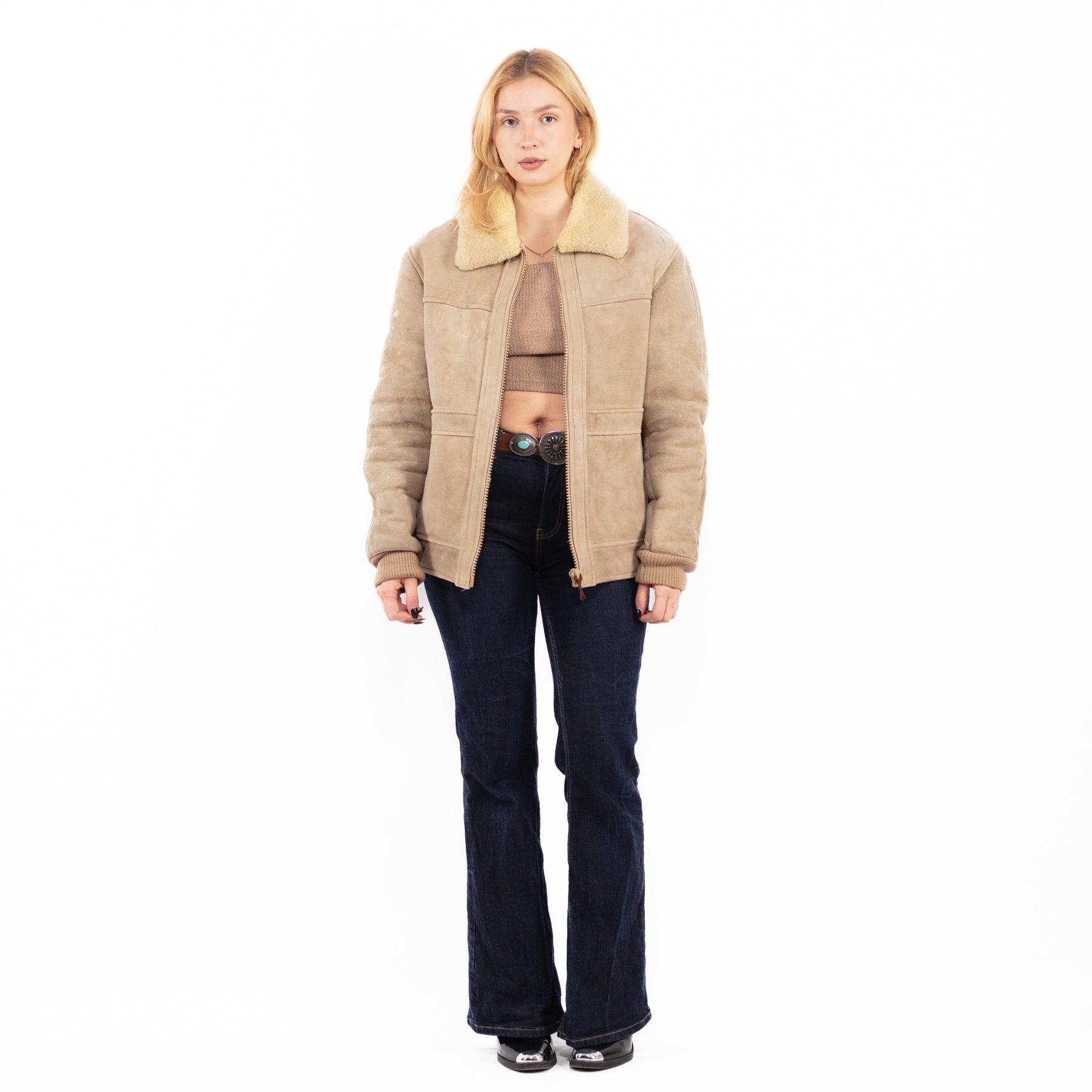 Beige Vintage 80's Women Sheepskin Jacket in Beige With Free Delivery