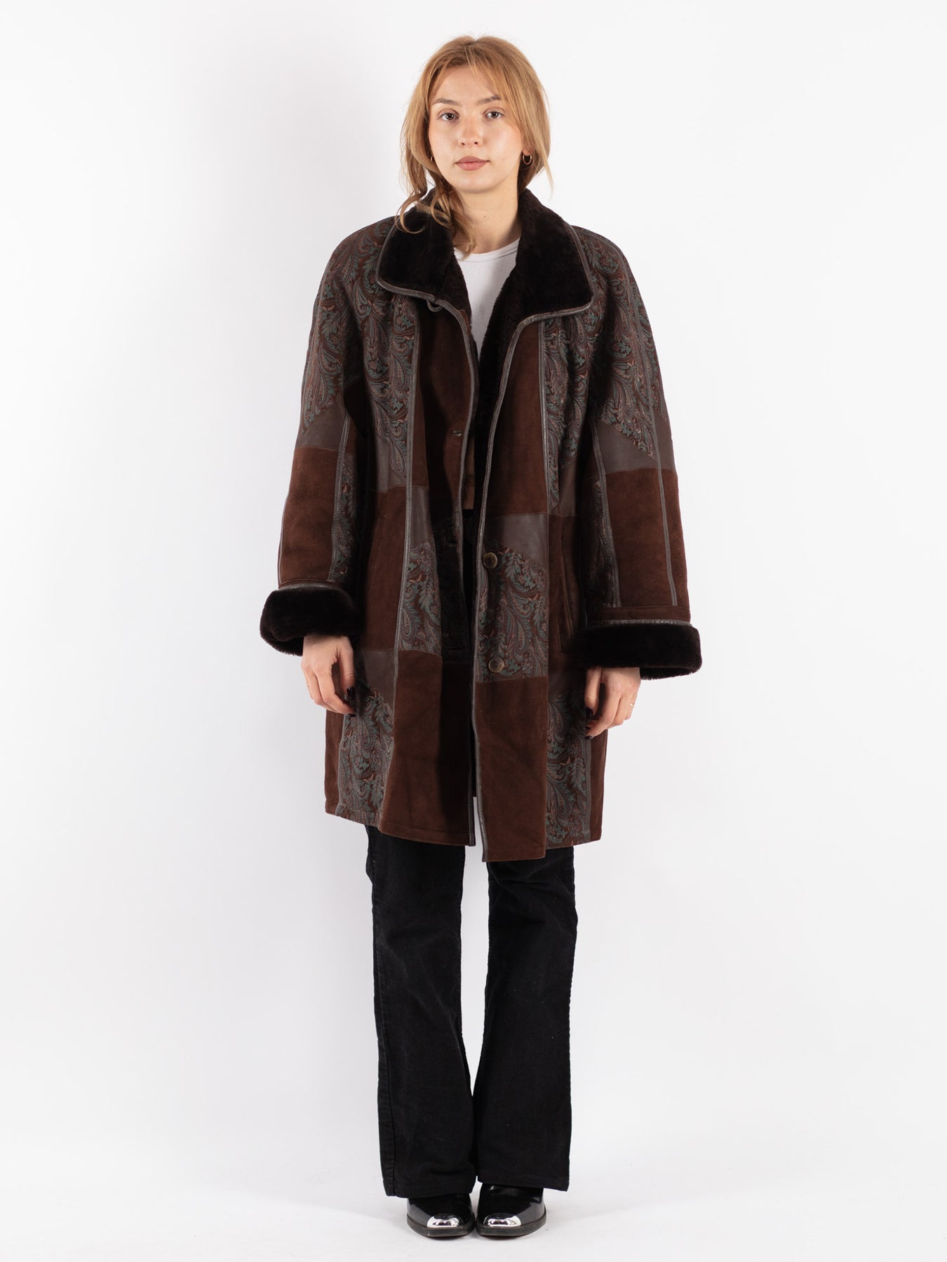 Vintage 80's Women Sheepskin Shearling Coat in Brown