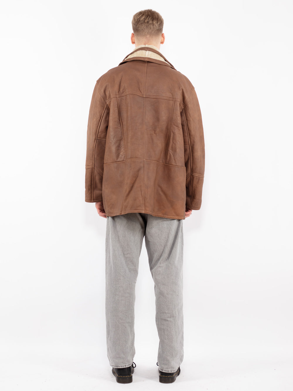 What it is: Vintage 90's Men Sheepskin Coat in Brown — genuine sheepskin (shearling), one-of-a-kind vintage.