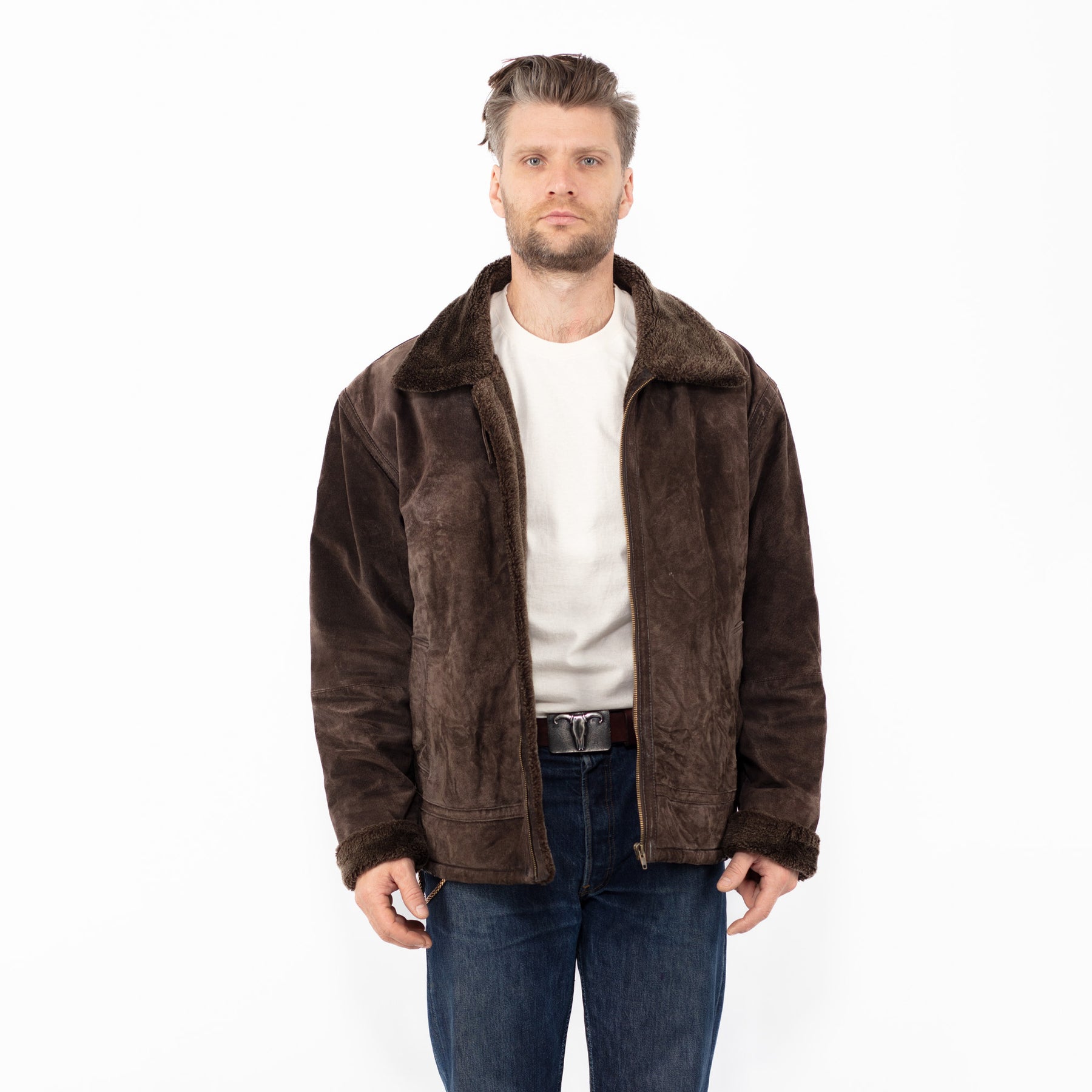 Vintage 90's Men Suede Sherpa Jacket in Brown