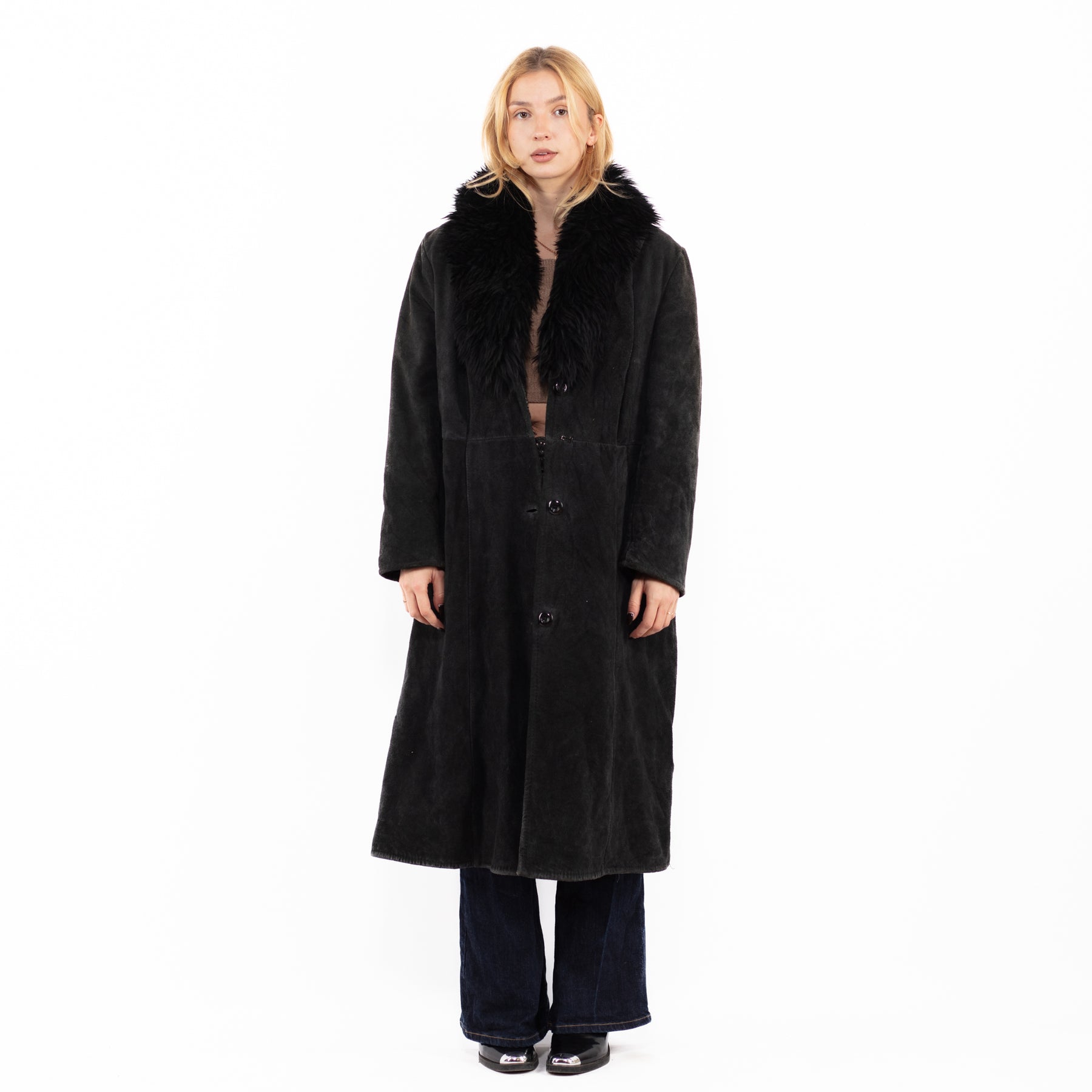 Black Vintage 90's Penny Lane Suede Sherpa Coat in Black With Free Delivery