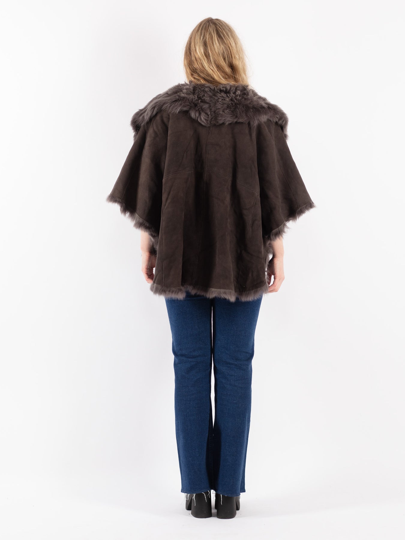 Gray Vintage 90's Women Cape Style Sheepskin Coat in Gray Brown With Free Delivery