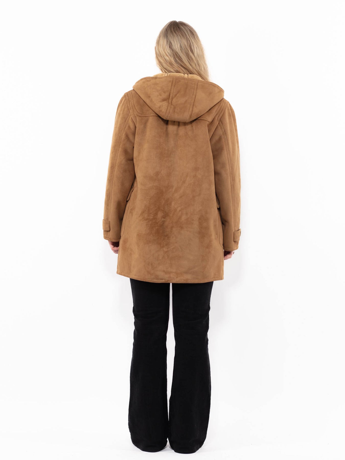 Vintage 90's Women Faux Sheepskin Coat in Brown