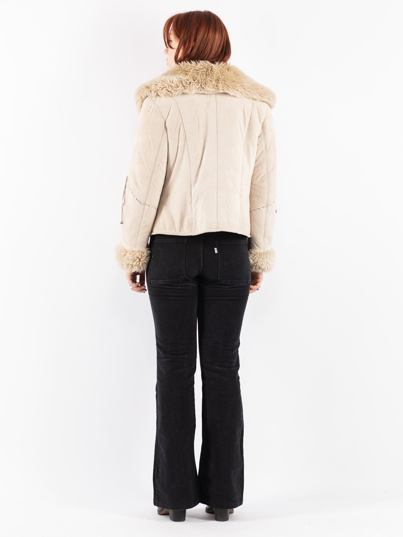 Vintage 90's Women Faux Sheepskin Jacket in Beige