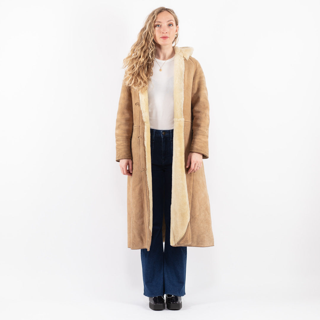 Beige Vintage 90's Women Sheepskin Coat in Beige With Free Delivery