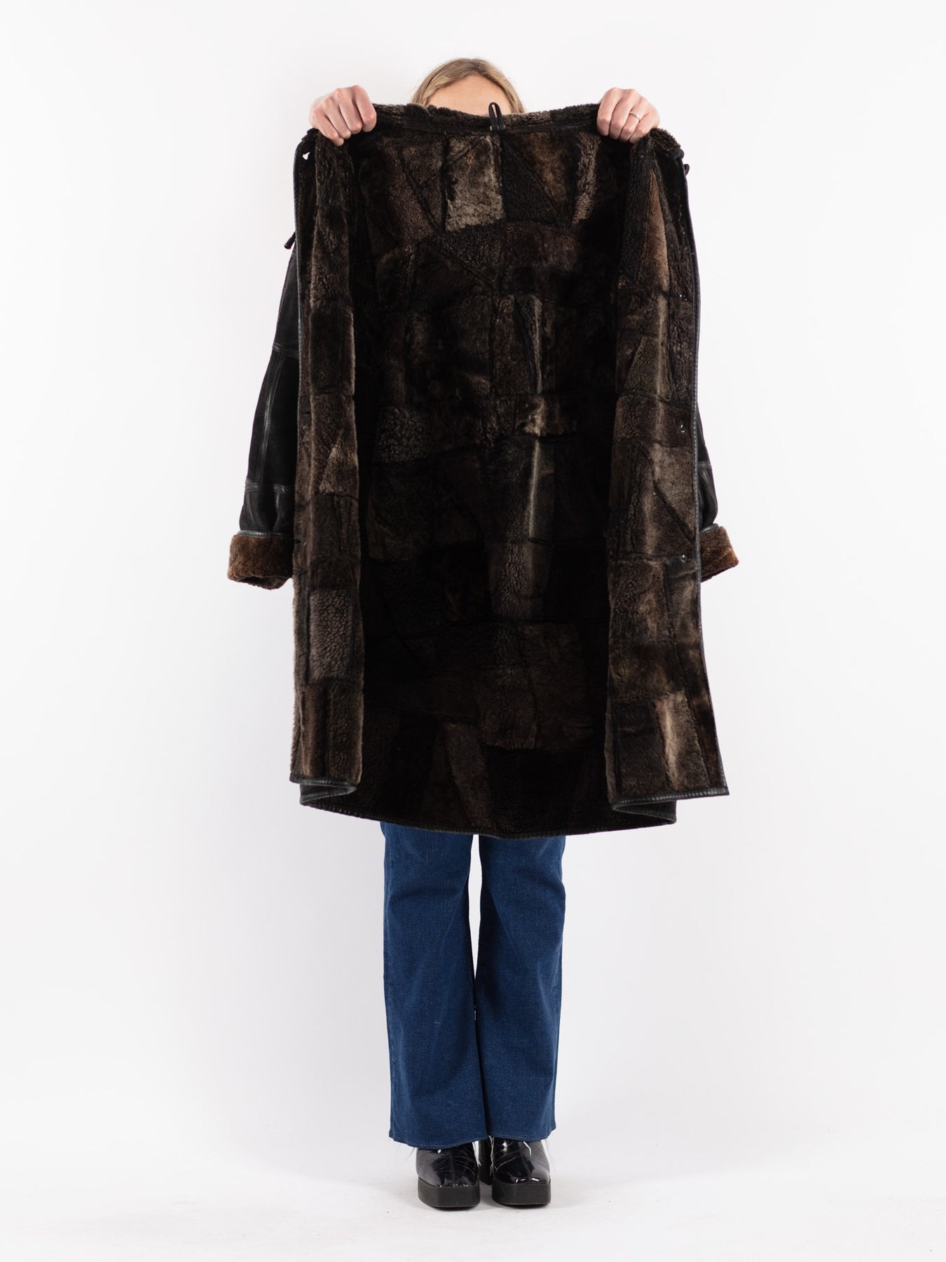 Vintage 90's Women Sheepskin Coat in Black
