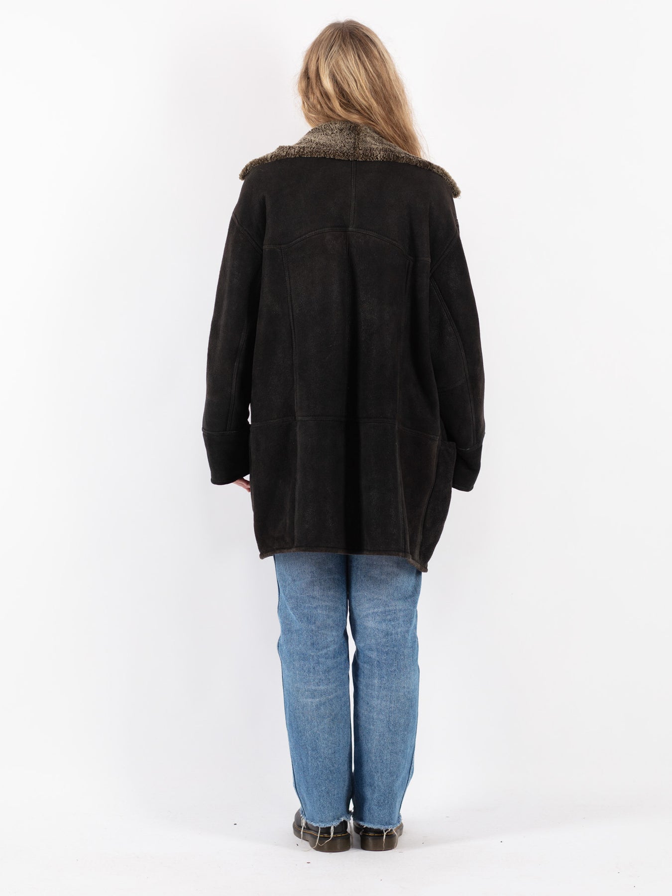 Black Vintage 90's Women Oversized Sheepskin Coat in Black With Free Delivery