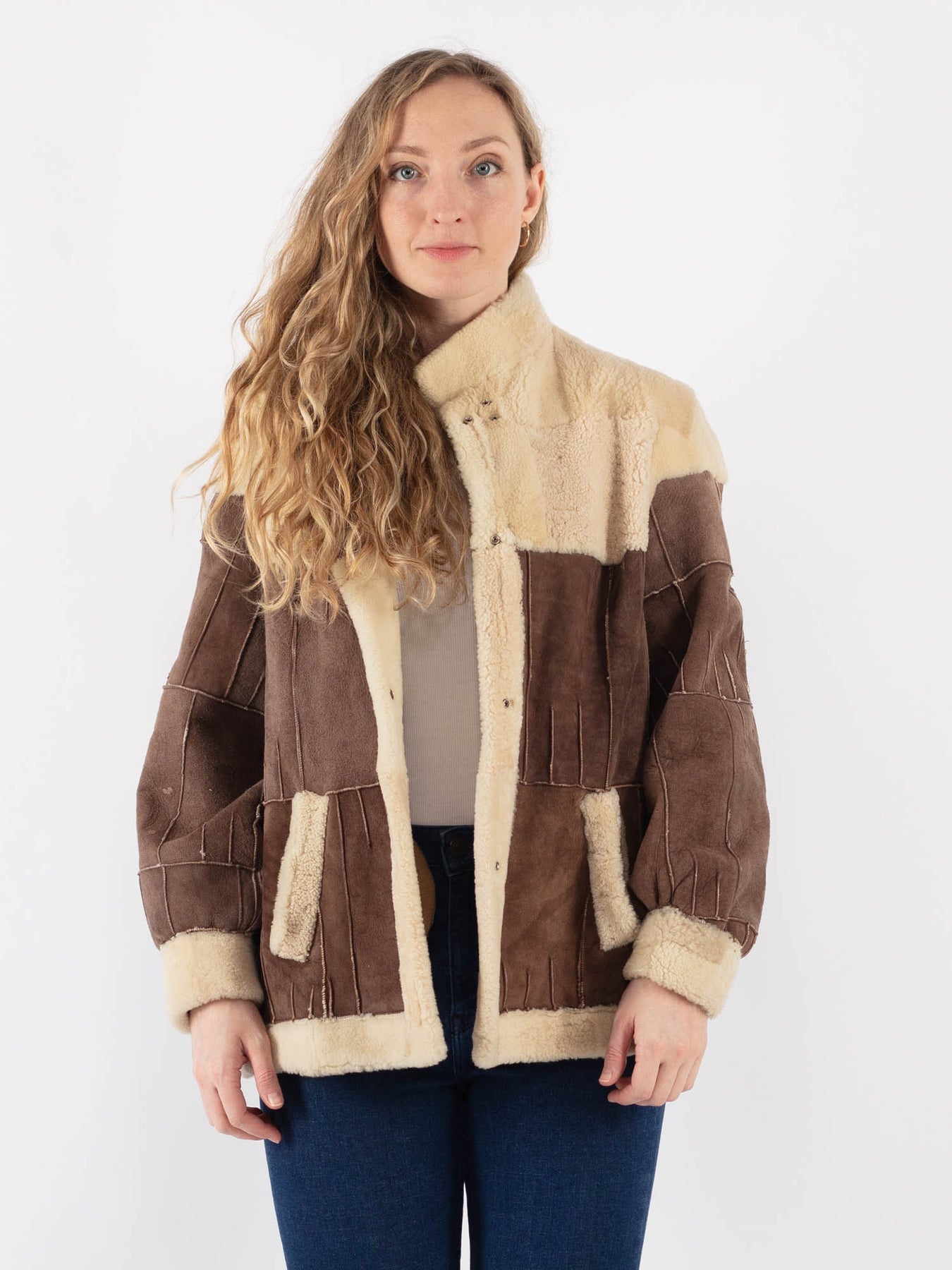 Vintage 90's Women Sheepskin Jacket in Brown