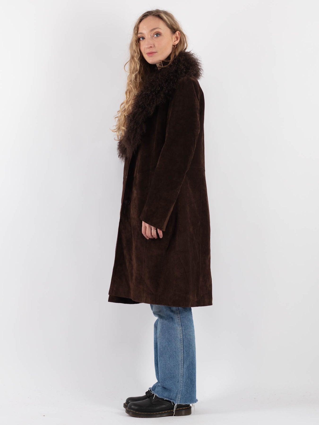Brown Vintage 90's Women Suede Coat in Brown With Free Delivery