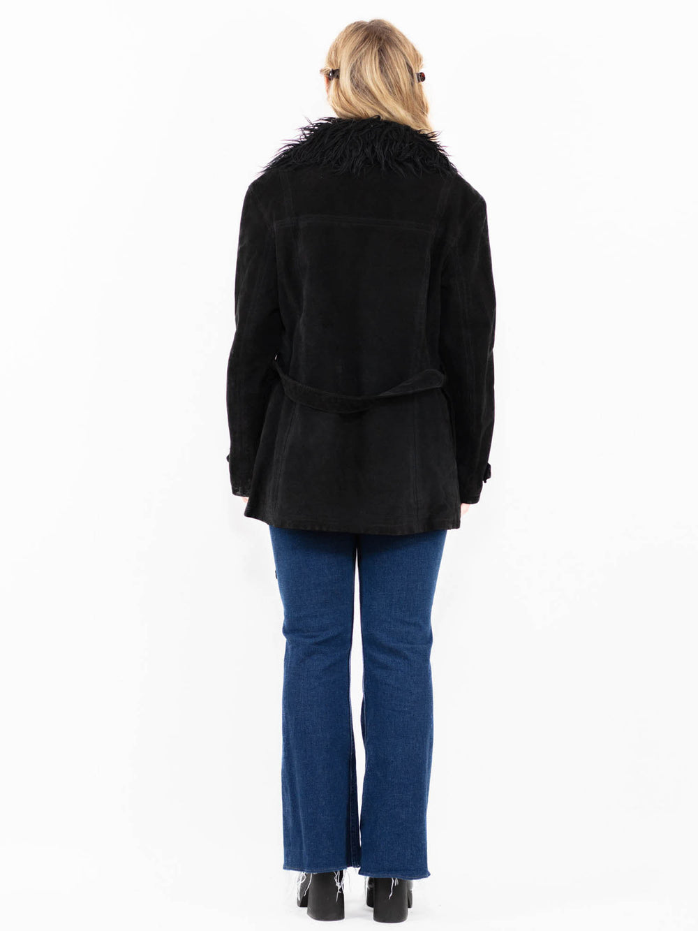 Black Vintage 90's Women Suede Sherpa Coat in Black With Free Delivery