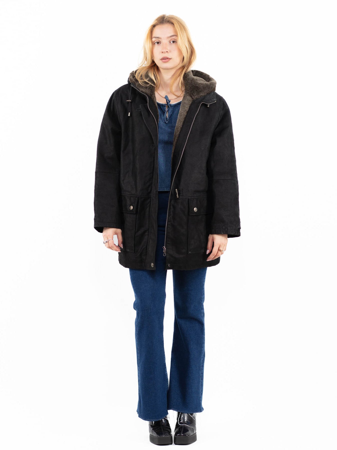 What it is: Kas tas ir: Vintage 90's Women Suede Sherpa Coat in Black