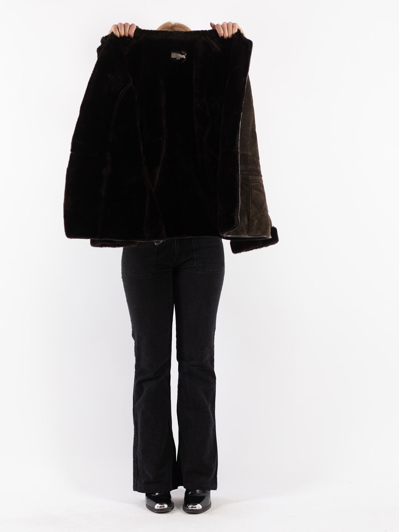 Vintage 90's Women Suede Sherpa Coat in Brown