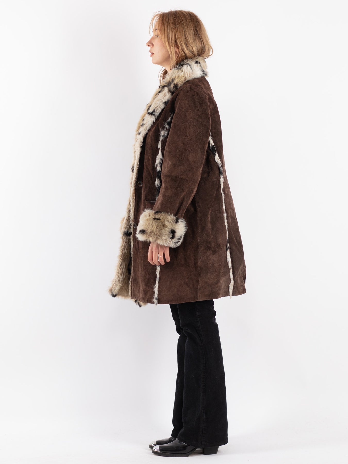 Vintage 90's Women Suede Sherpa Coat in Brown