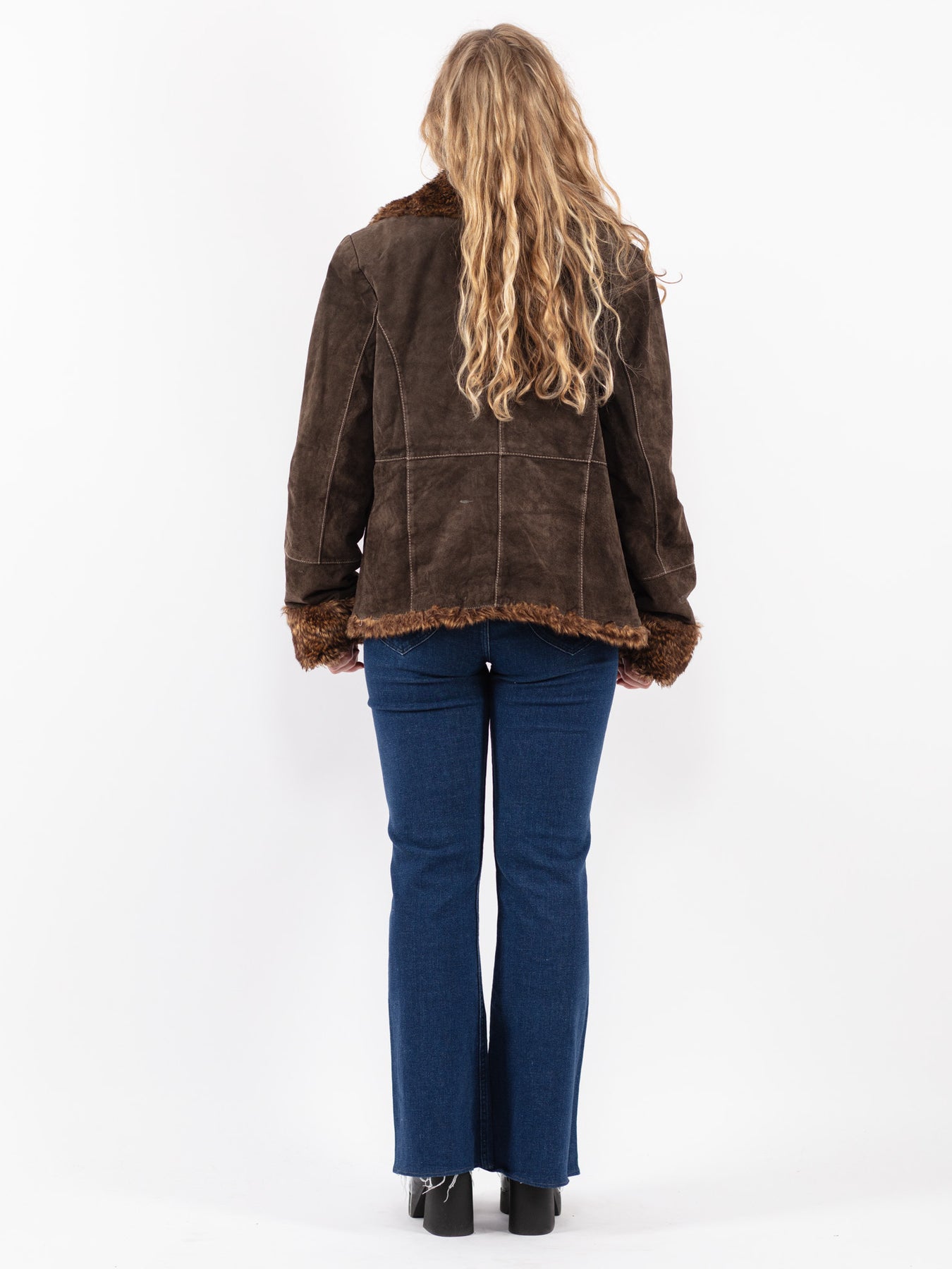 Vintage 90's Women Suede Sherpa Jacket in Brown
