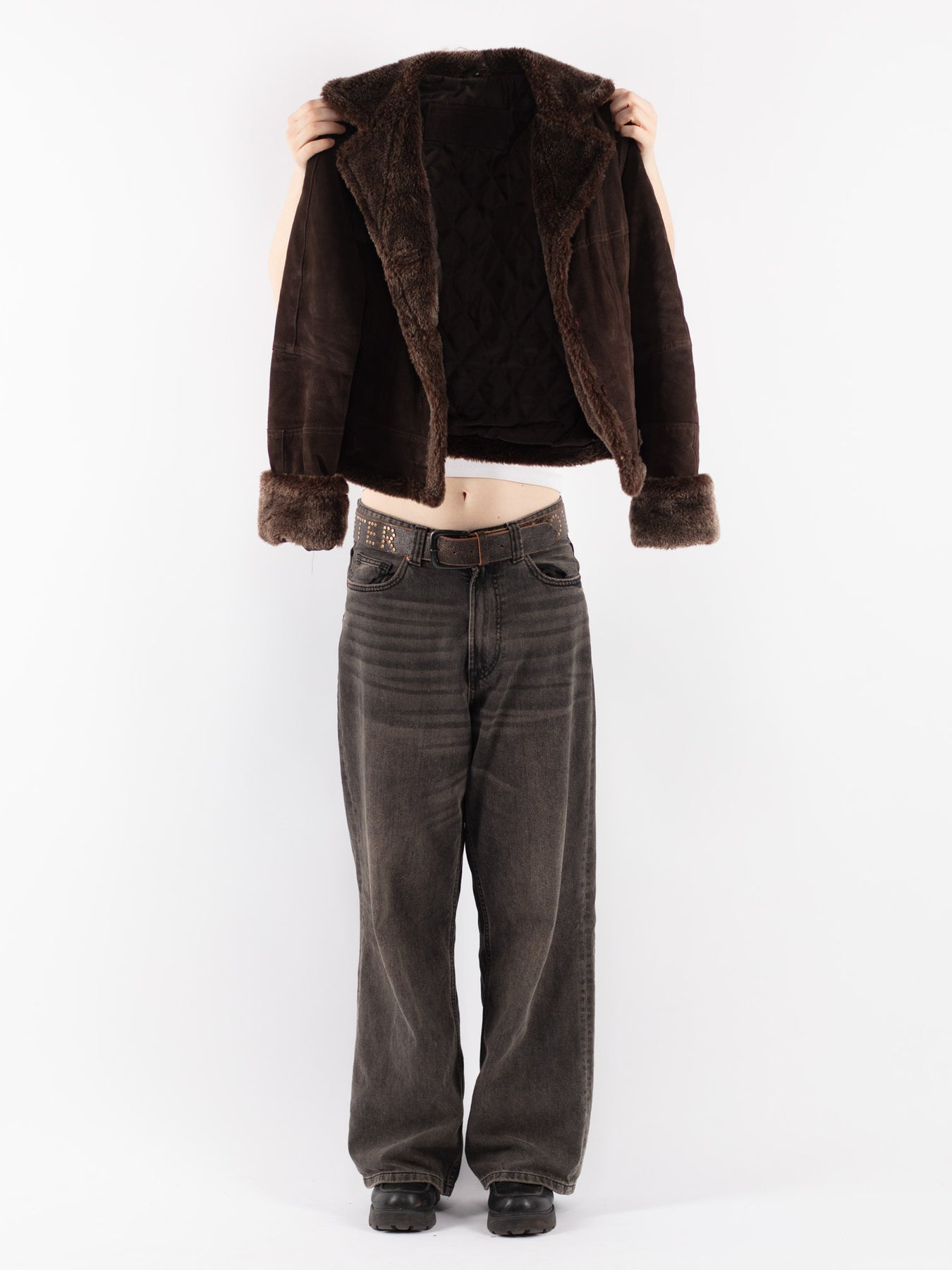 Vintage 90's Women Suede Sherpa Jacket in Brown