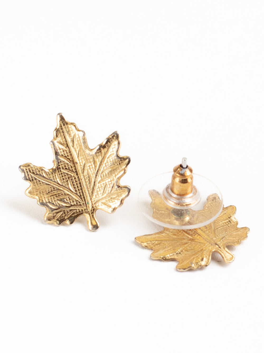 Vintage Gold-Tone Maple Leaf Stud Earrings