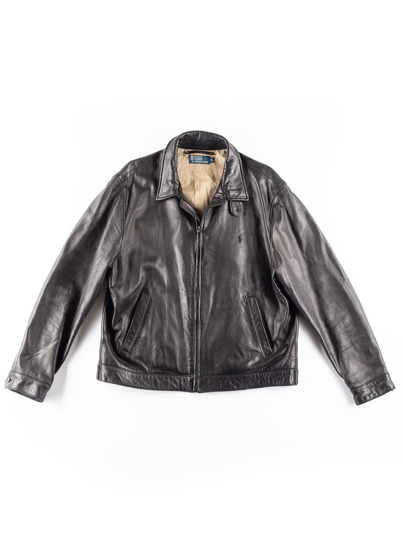 Vintage 00's Men Ralph Lauren Leather Jacket in Black With Free Delivery