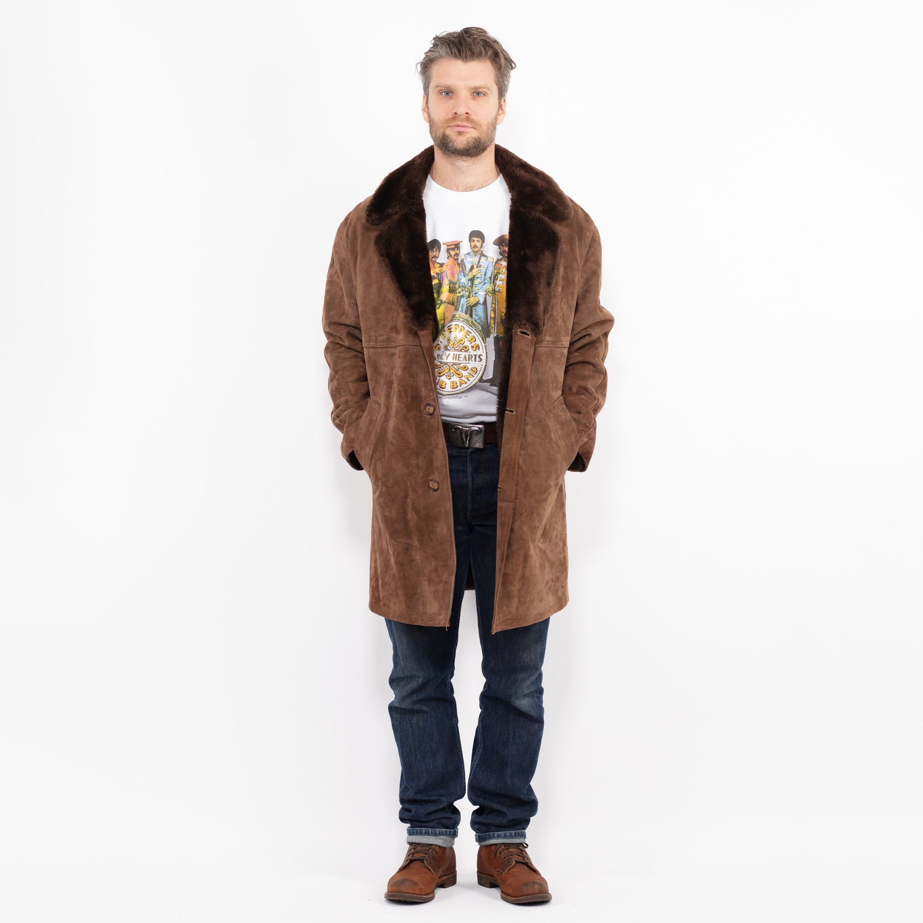 Brown Vintage 70's Men Suede Sherpa Coat in Brown Suede Sherpa With Free Delivery