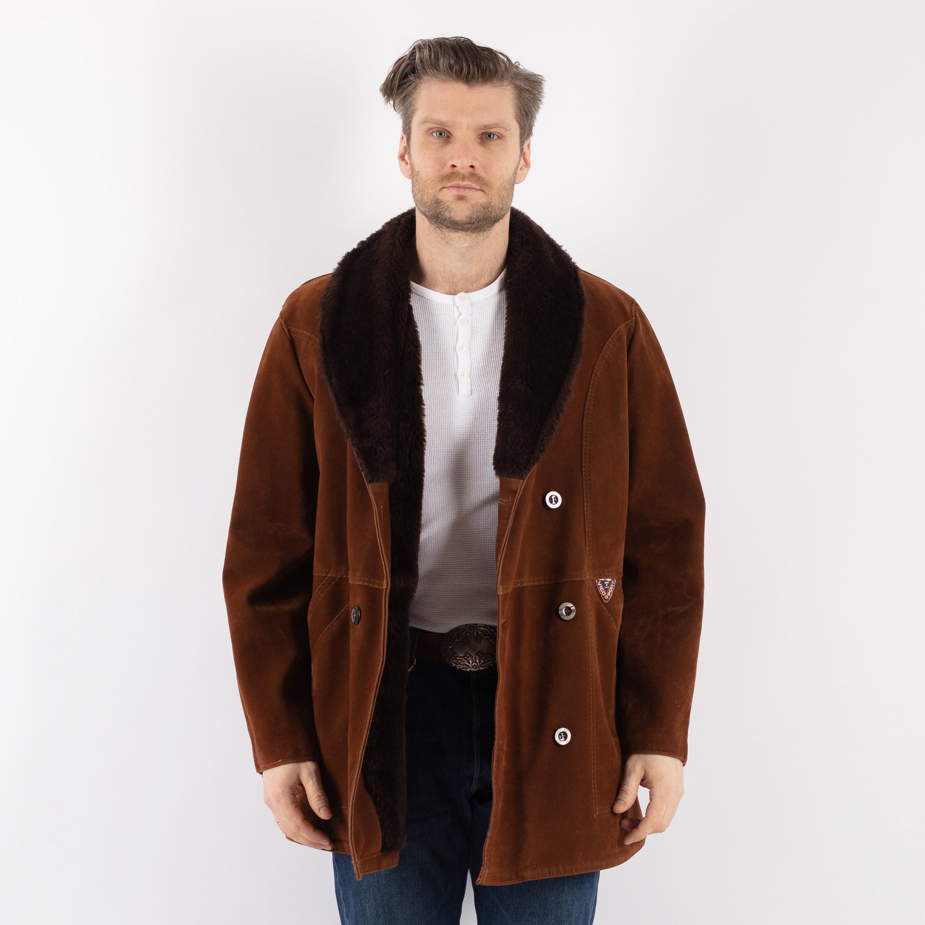 Brown Vintage 90's Men Faux Sheepskin Coat in Brown Faux Sheepskin With Free Delivery
