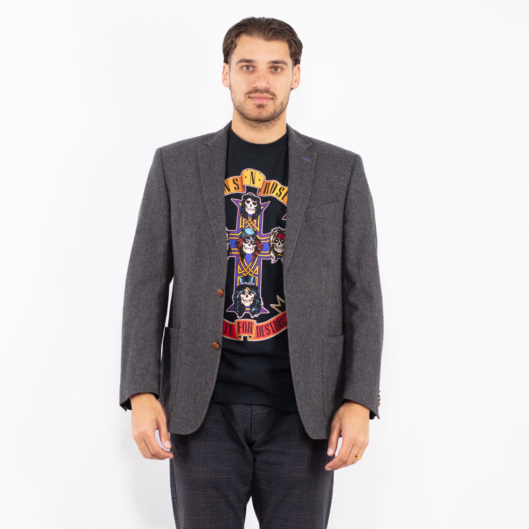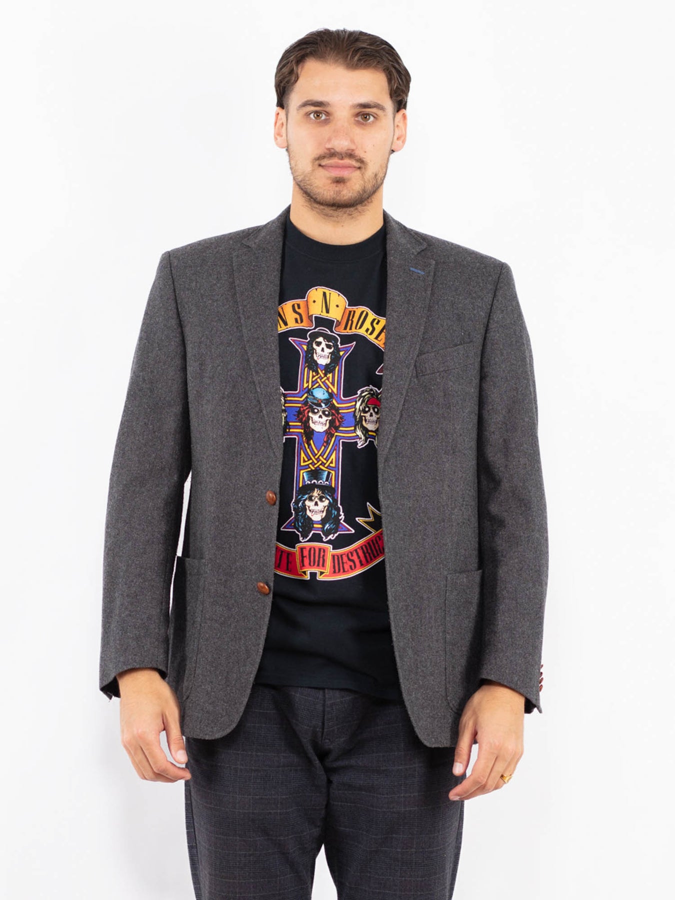 Gray Vintage 00's Men Wool Blazer Jacket in Gray With Free Delivery
