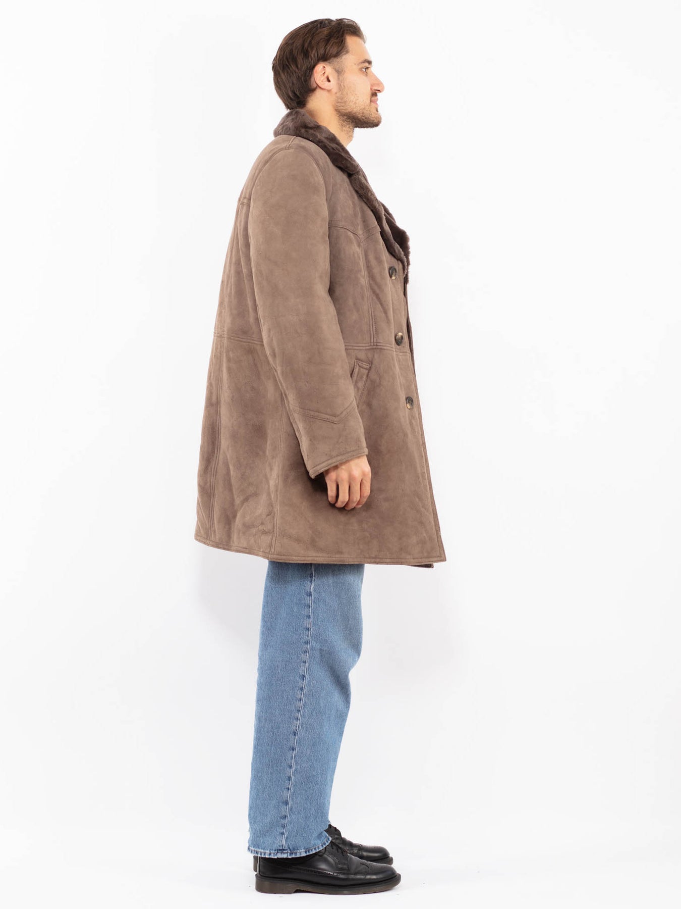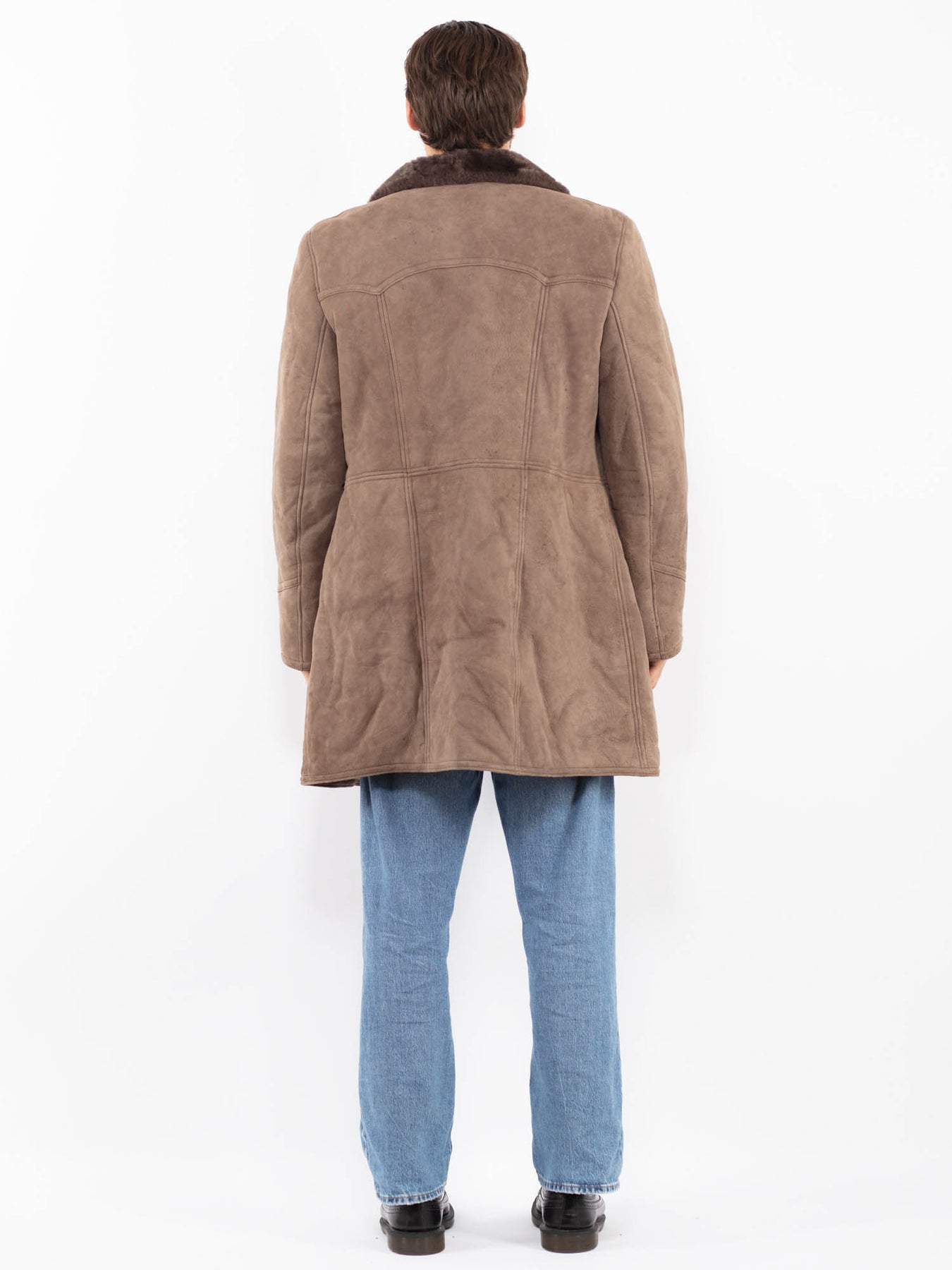 Vintage 70's Men Sheepskin Shearling Coat in Gray