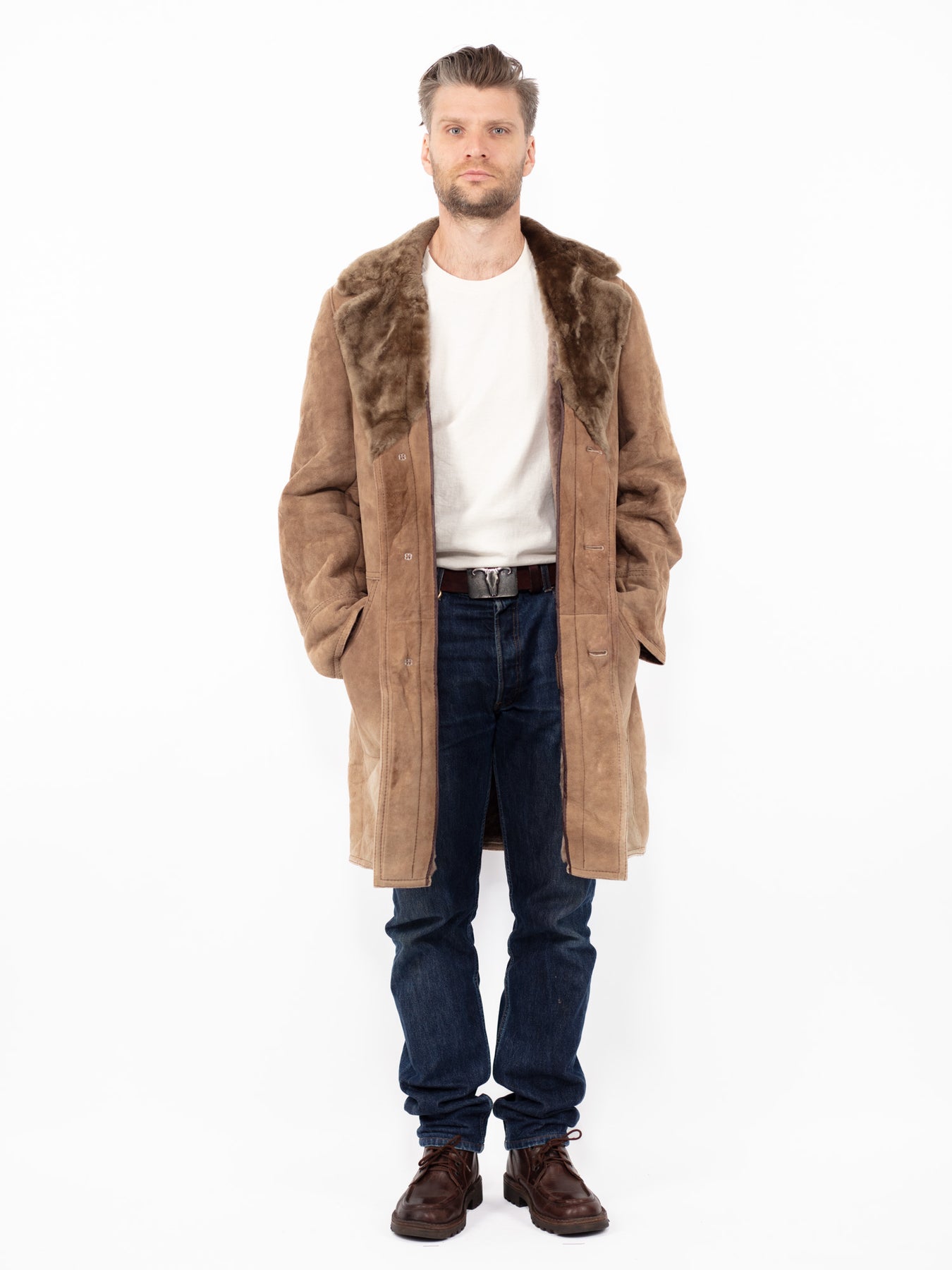 Beige Vintage 70's Men Sheepskin Coat in Beige Sheepskin With Free Delivery