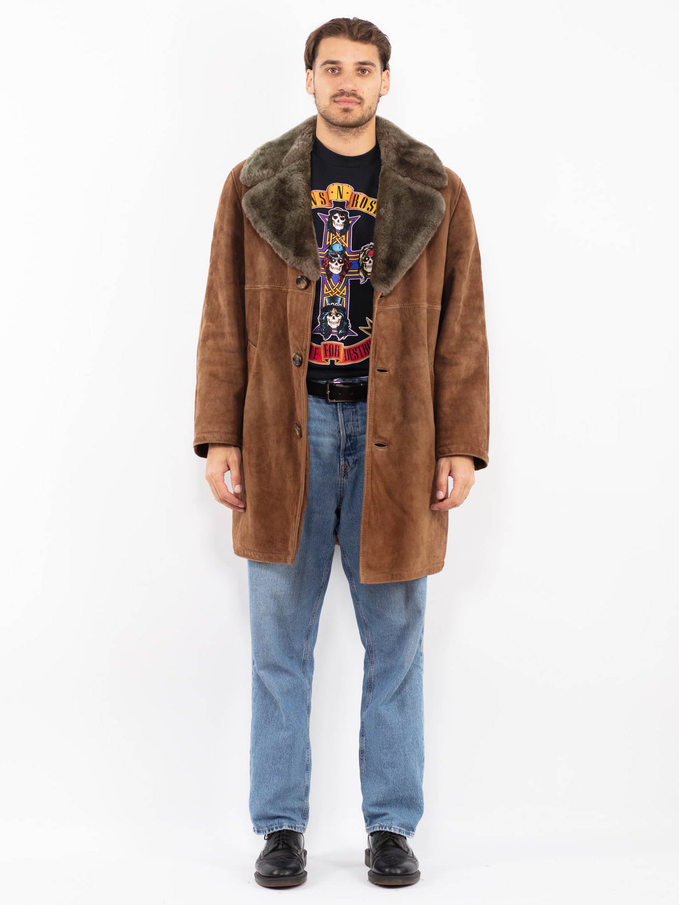 Brown Vintage 70's Men Sheepskin Coat in Brown Sheepskin With Free Delivery