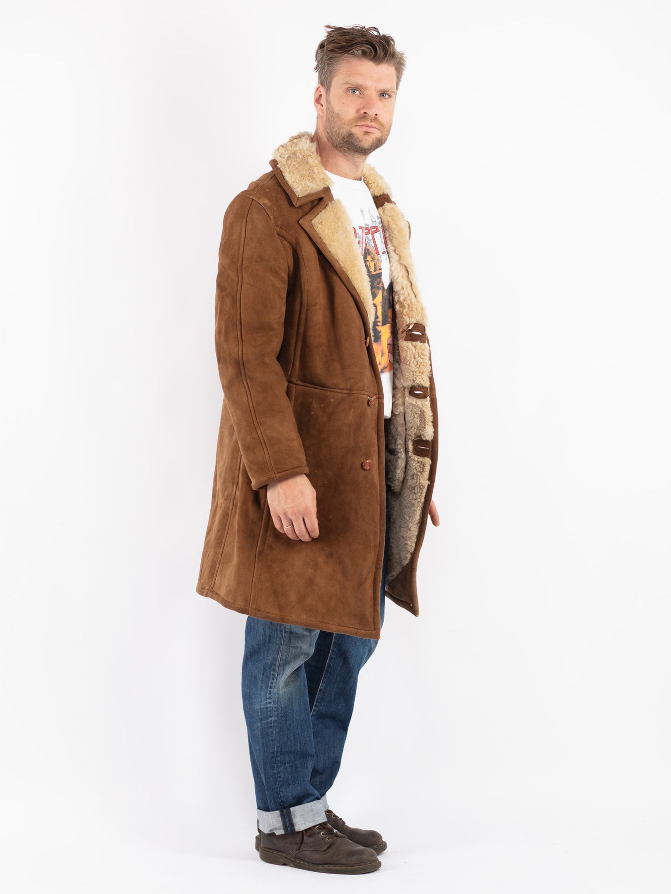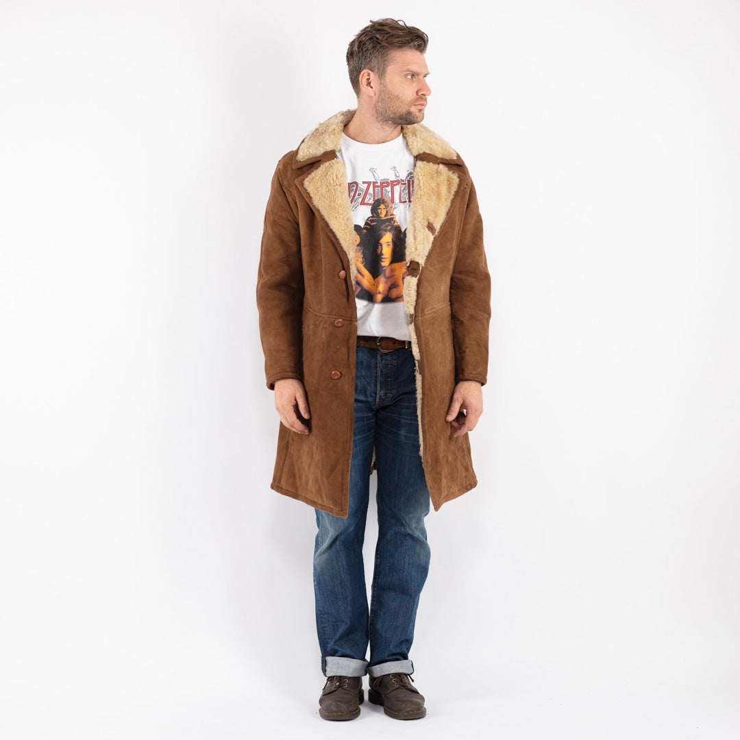 Vintage 70's Men Sheepskin Coat in Brown