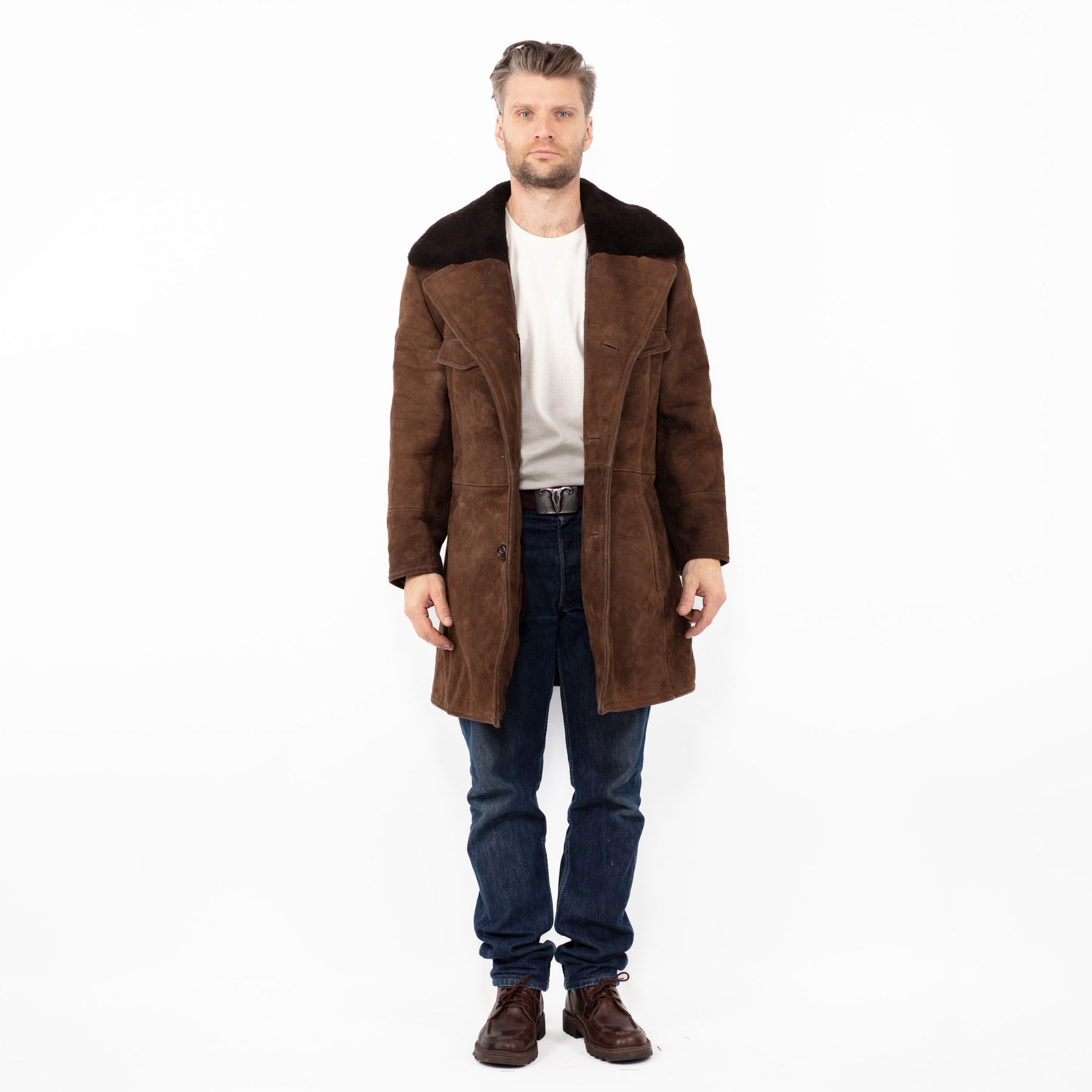 Brown Vintage 70's Men Sheepskin Coat in Brown Sheepskin With Free Delivery