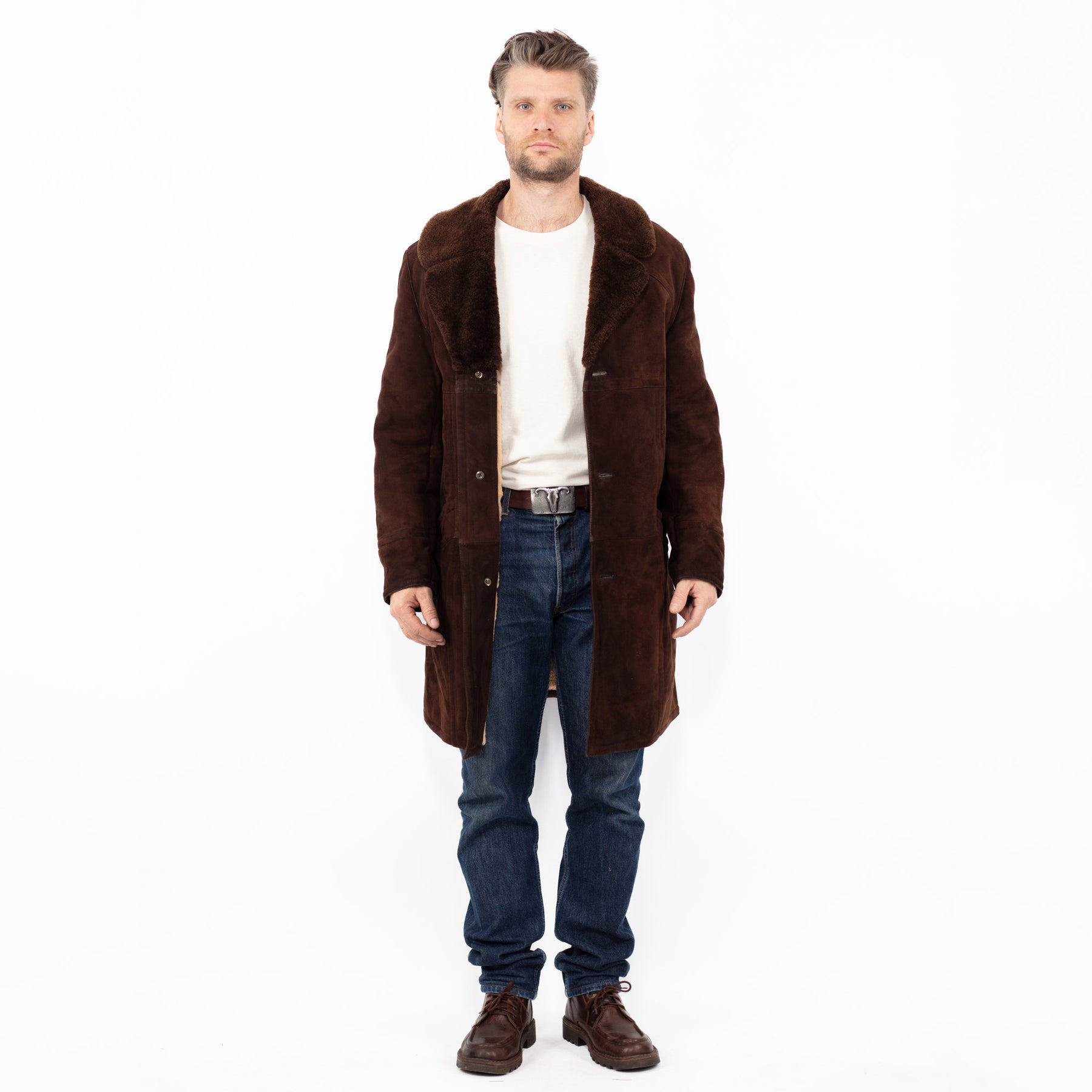Brown Vintage 70's Men Sheepskin Coat in Brown Sheepskin With Free Delivery