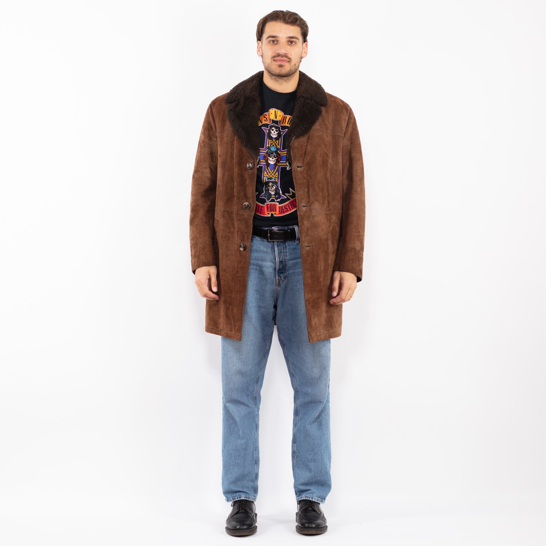 Brown Vintage 70's Men Suede Sherpa Coat in Brown Suede Sherpa With Free Delivery