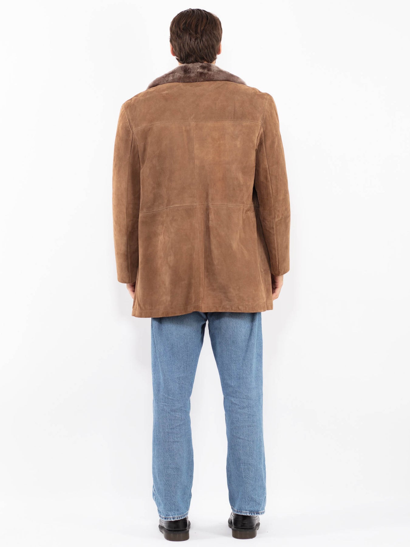 Vintage 70's Men Suede Sherpa Coat in Beige