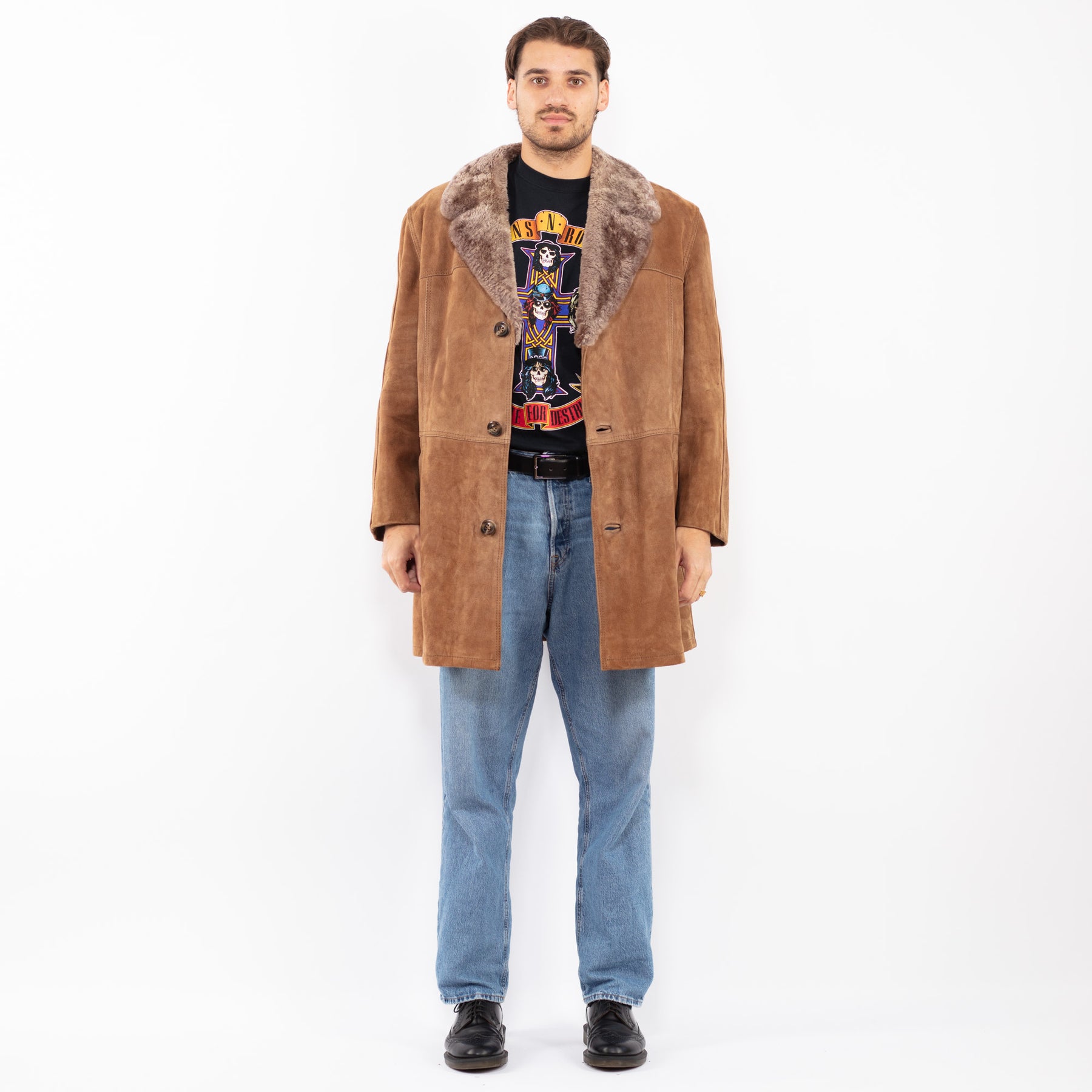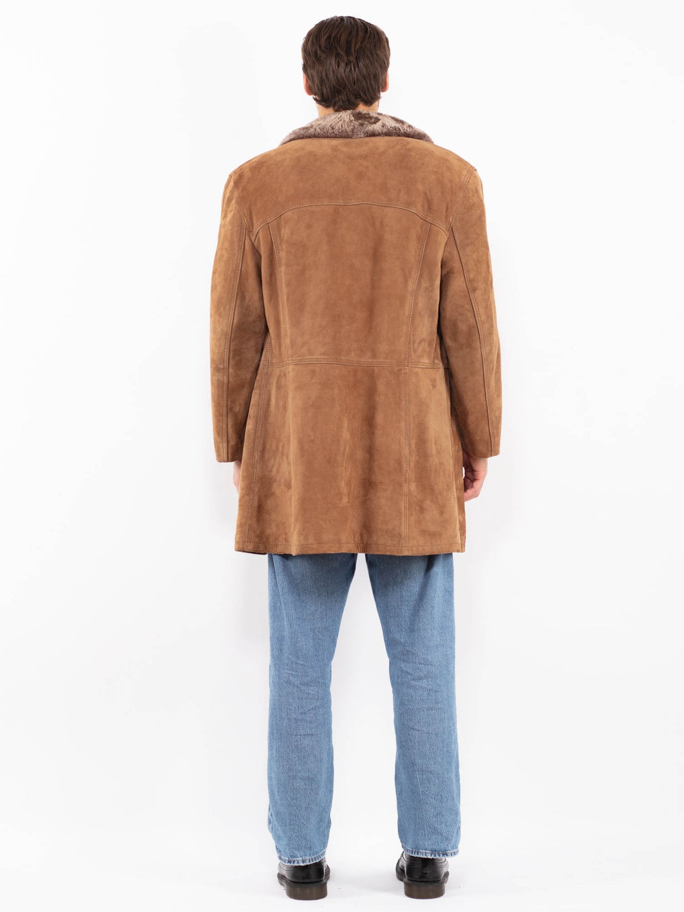 Brown Vintage 70's Men Suede Sherpa Coat in Brown Sheepskin With Free Delivery